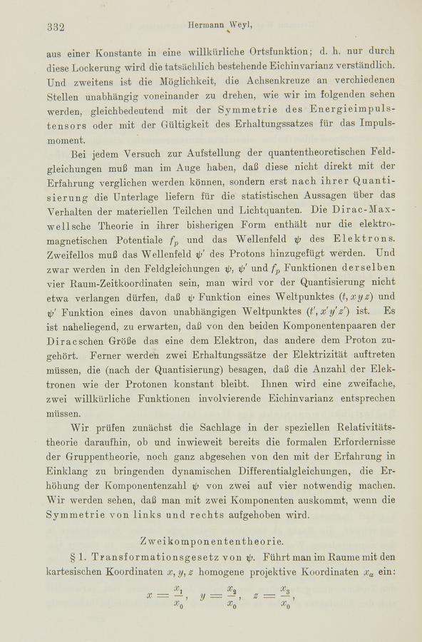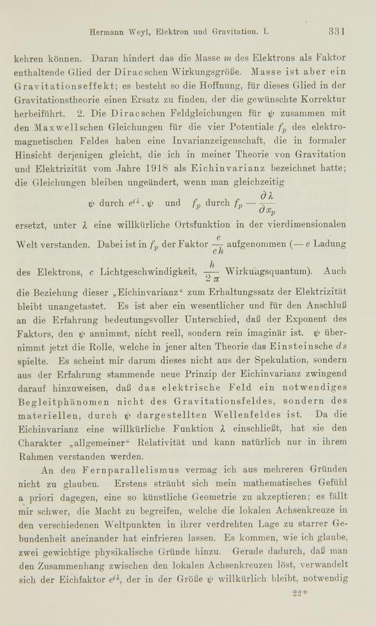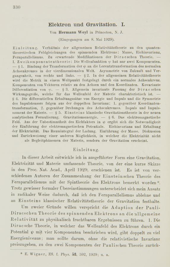 Hermann Weyl (1929). Elektron und Gravitation, Zeitschrift für Physik, 56: 330–352.