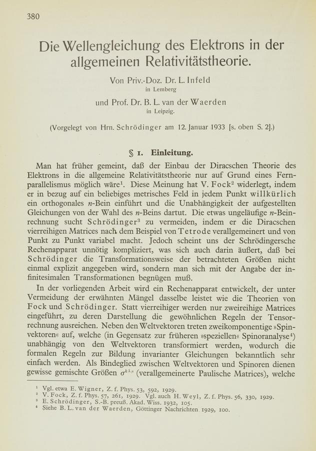 Blum, Alexander S. and Rickles, Dean (2018). Leopold Infeld and Bartel van der Waerden (1933): Die Wellengleichung des Elektrons in der allgemeinen Relativitätstheorie. In: Quantum Gravity in the First Half of the Twentieth Century: A Sourcebook. Berlin: Max-Planck-Gesellschaft zur Förderung der Wissenschaften.