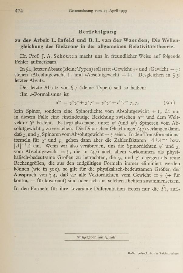 Leopold Infeld and Bartel van der Waerden (1933). Die Wellengleichung des Elektrons in der allgemeinen Relativitätstheorie. Sitzungsberichte der preussischen Akademie der Wissenschaften, physikalisch-mathematische Klasse, 380–401 (errata on p. 474).