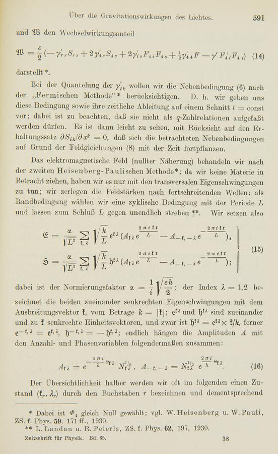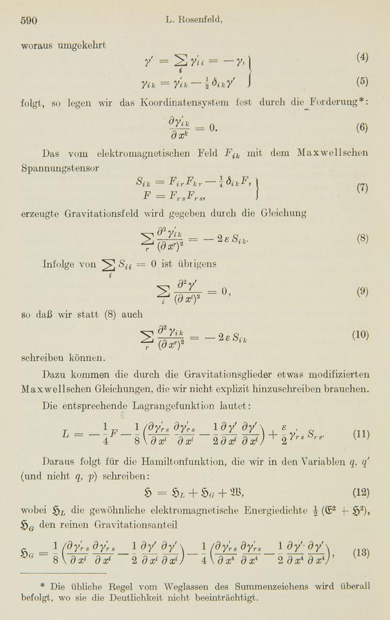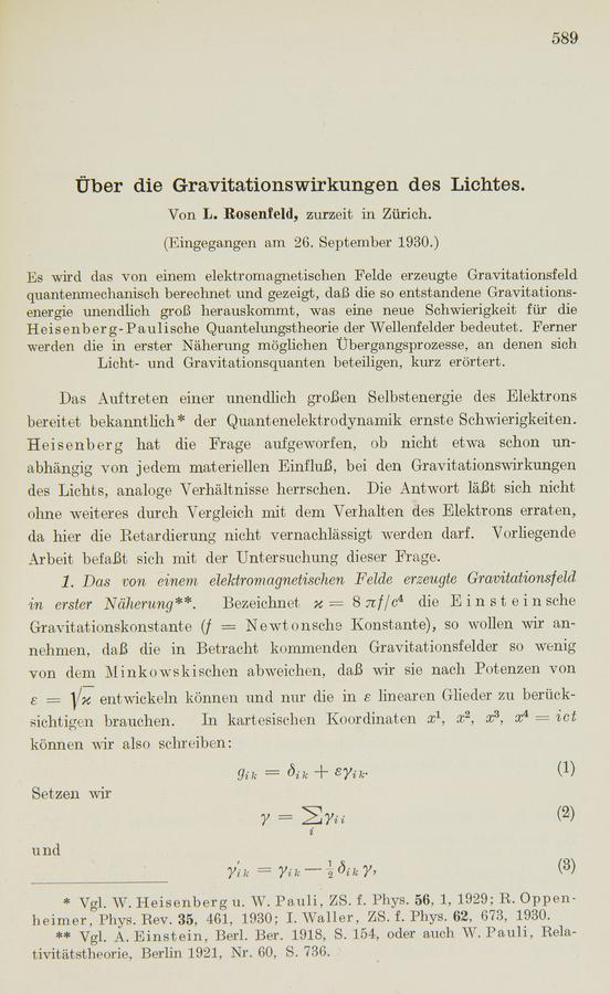 Léon Rosenfeld (1930). Über die Gravitationswirkungen des Lichts. Zeitschrift für Physik, 65: 589–599.