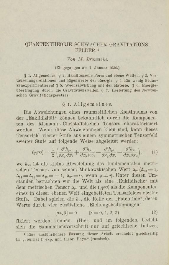 Blum, Alexander S. and Rickles, Dean (2018). Matvei Bronstein (1936): Quantentheorie schwacher Gravitationsfelder. In: Quantum Gravity in the First Half of the Twentieth Century: A Sourcebook. Berlin: Max-Planck-Gesellschaft zur Förderung der Wissenschaften.