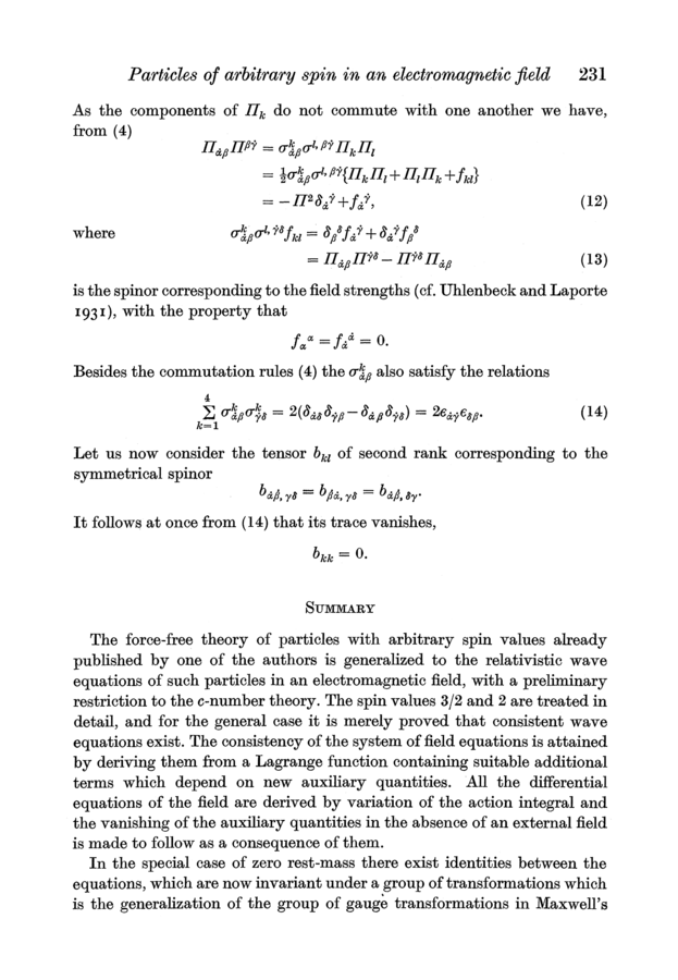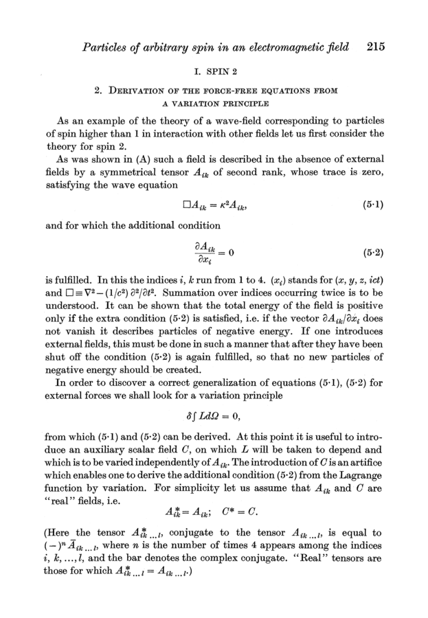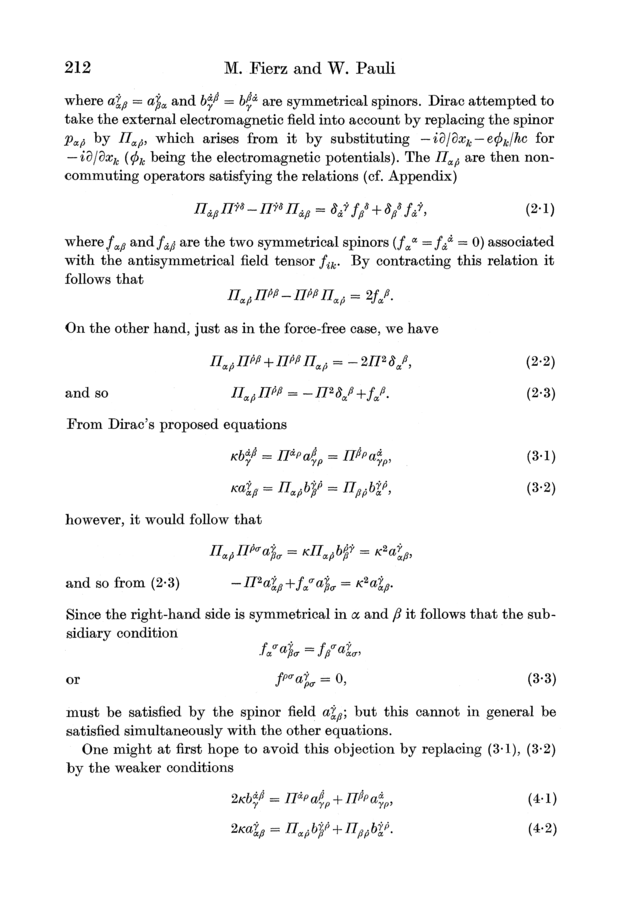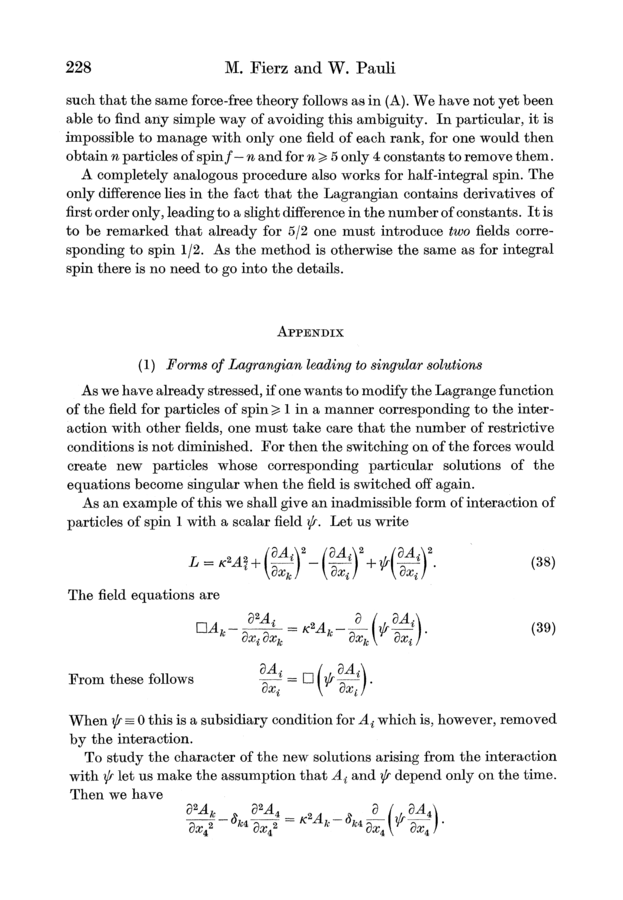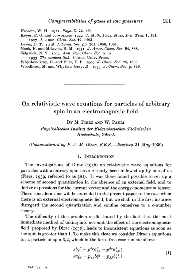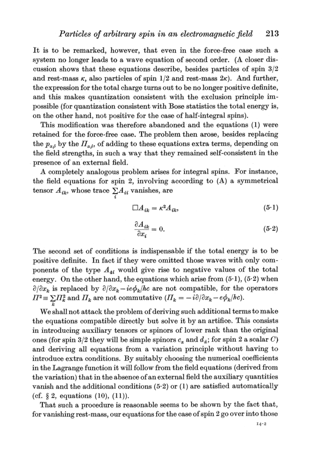Markus Fierz and Wolfgang Pauli (1939). On Relativistic Wave Equations for Particles of Arbitrary Spin in an Electromagnetic Field. Proceedings of the Royal Society of London, A173, 211–232.