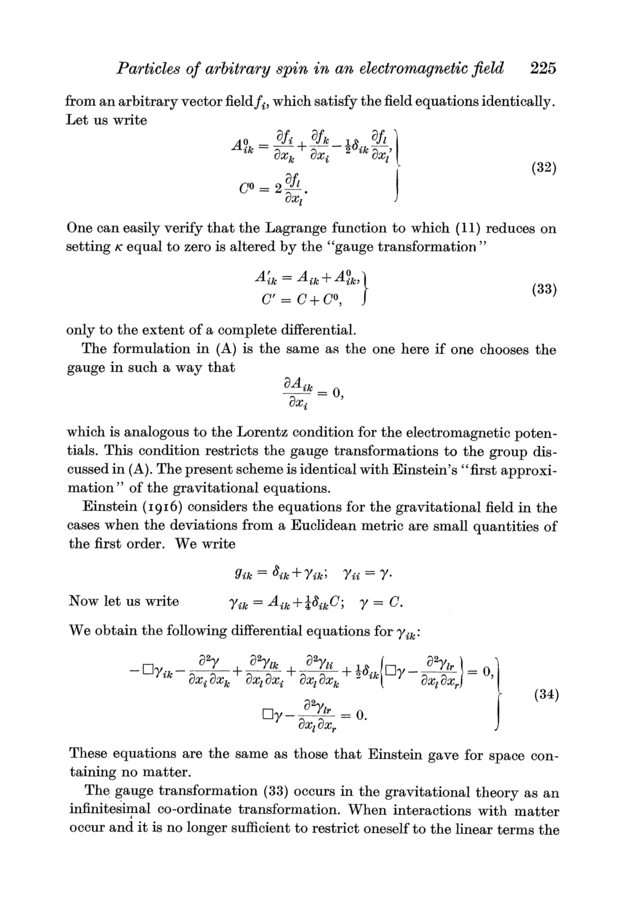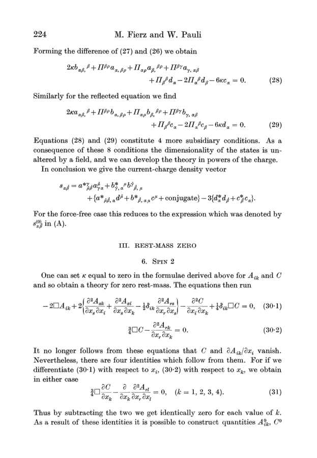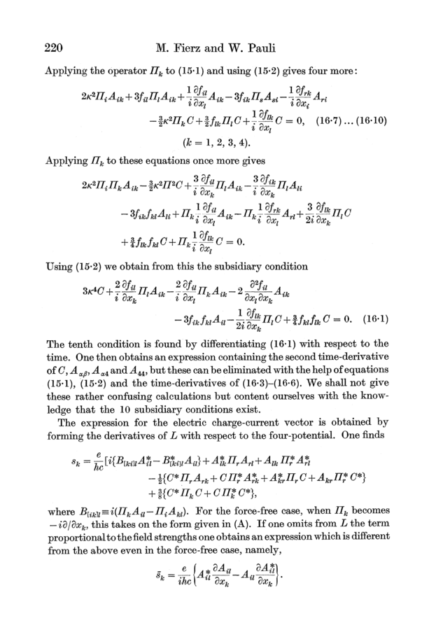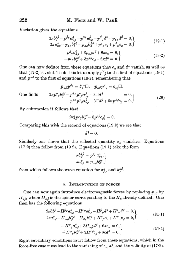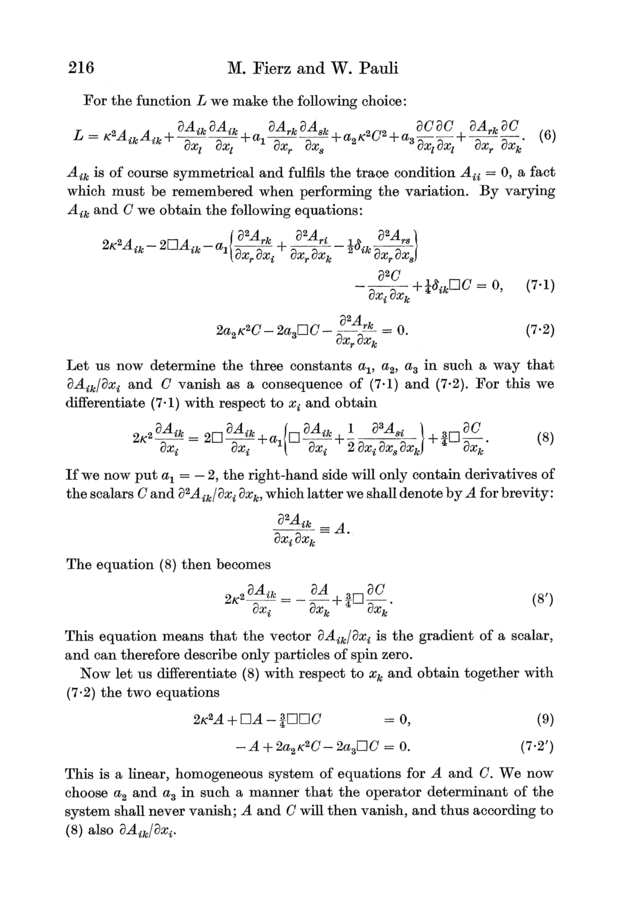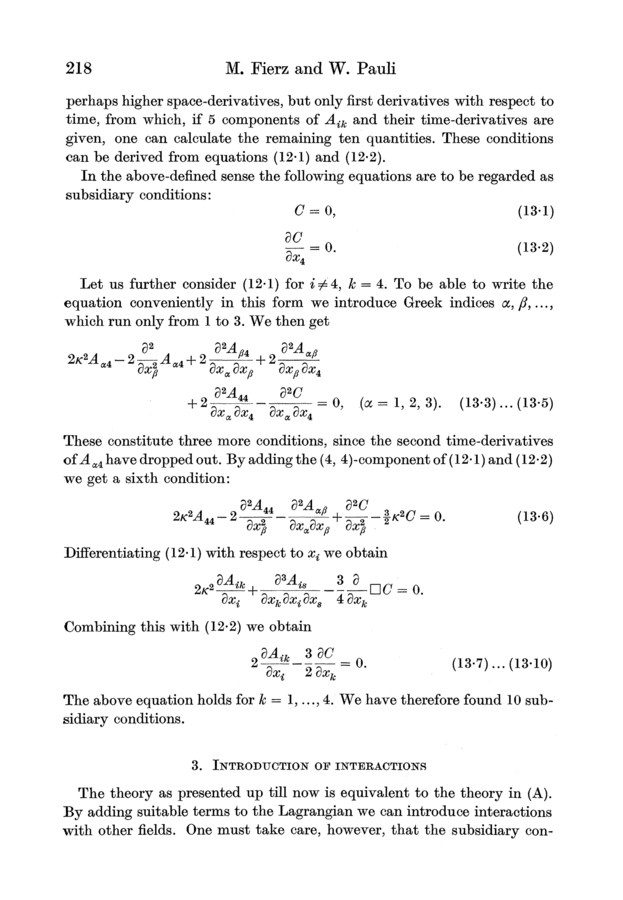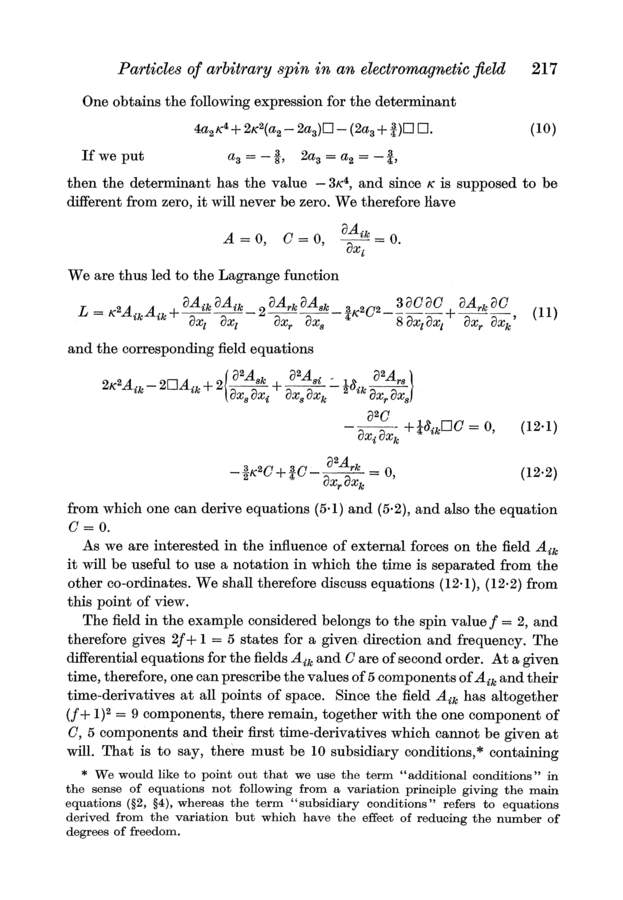 Markus Fierz and Wolfgang Pauli (1939). On Relativistic Wave Equations for Particles of Arbitrary Spin in an Electromagnetic Field. Proceedings of the Royal Society of London, A173, 211–232.