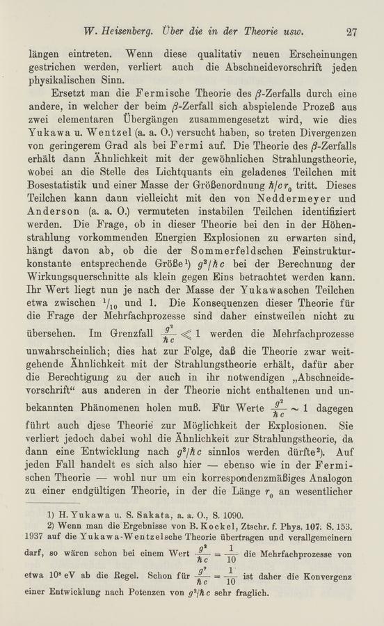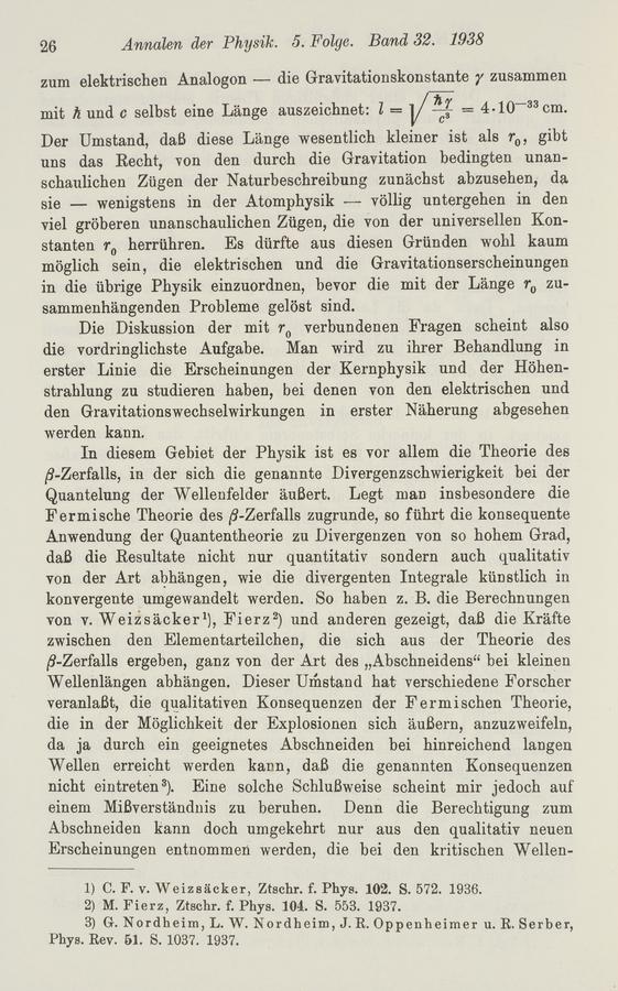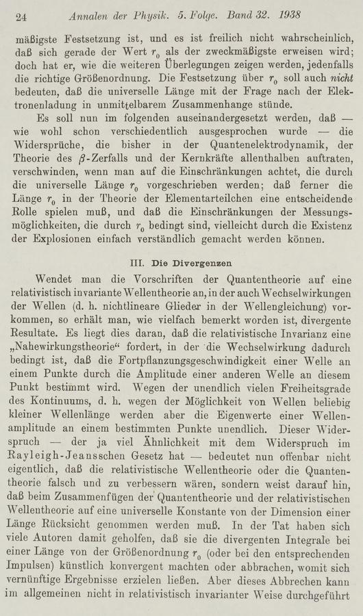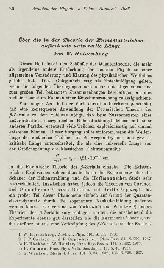 Werner Heisenberg (1938). Über die in der Theorie der Elementarteilchen auftretende universelle Länge. Annalen der Physik, 424: 20–33.