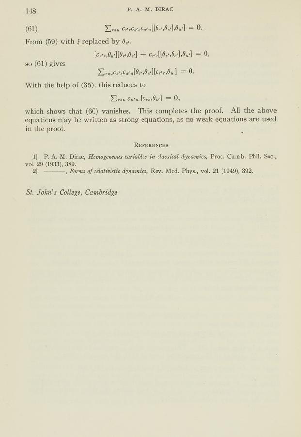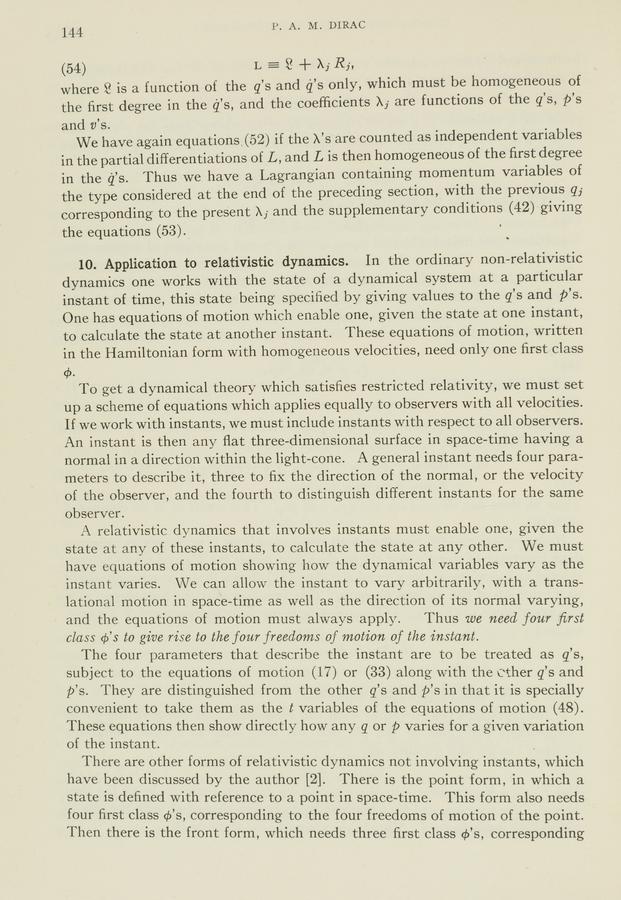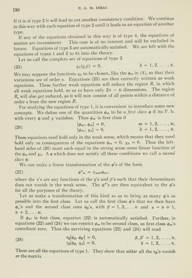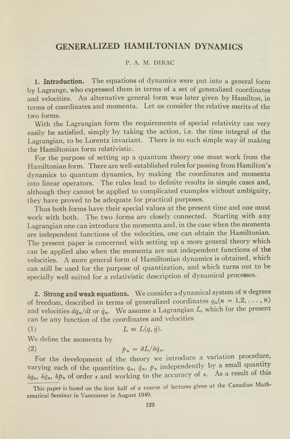 P. A. M. Dirac (1950). Generalized Hamiltonian Dynamics. Canadian Journal of Mathematics, 2: 129–148.