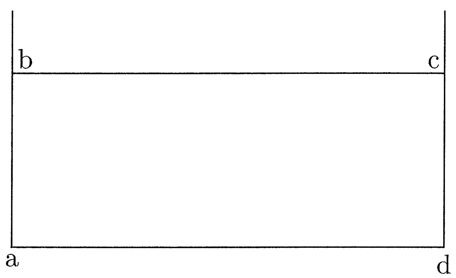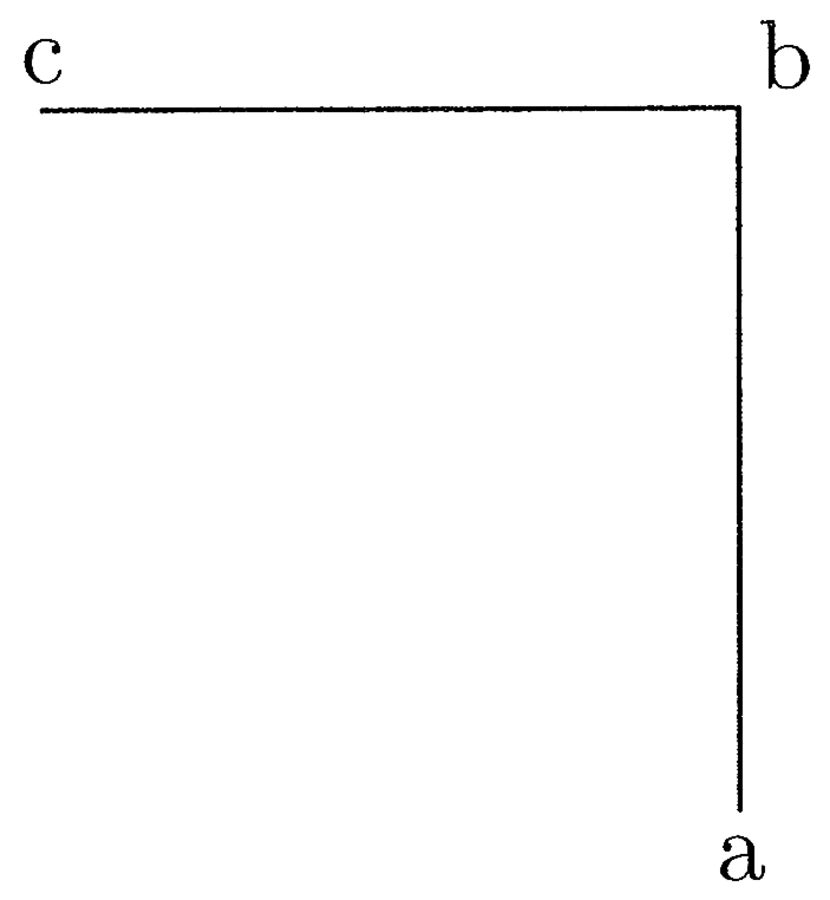 43. Lineam figuram motus puncti concipio. Quae si recta fuerit, tunc si uno eius termino fixo manente movetur, hic motus recte per triangulum orthogonium figuratur (cfr. figura 11). Ut si ab linea movetur a stante, motus figuratur per triangulum abc. Si enim motus b est ut latus bc, tunc sic proportionabiliter omnia puncta dabilia. Puta si d est punctus medius, tunc de est ut motus d, et de latus est medium ad bc (cfr. figura 12). Si vero ab recta movetur aequaliter in a sicut in b, motus configuratur per duplicem orthogonium sive quadrangulum abcd; omnia enim puncta dabilia aequaliter moventur. Si vero a movetur similiter et b, sed inaequaliter, hoc fieri potest infinitis modis et unica figura non poterit configurari.