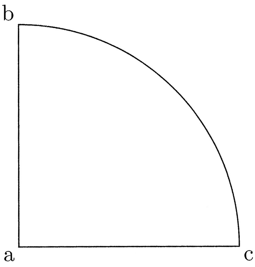 68. Ex hac iam dicta inventione, si vis, elicias, quomodo omnem portionem superficiei sphaerae poteris reducere in superficiem conicam aut cylindricam, etiam si tibi proportio ipsius superficiei sphaerae ad totius sphaerae superficiem ignota foret, hoc modo. Et sit exempli gratia quadrans ut prius abc, et huius arcum notum signa, qui sit hc, et sit hc duae tertiae quadrantis (cfr. figura 30).
