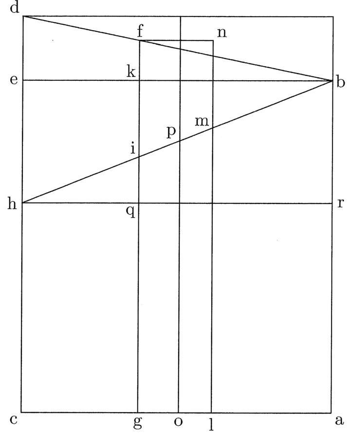 5. Forte dicitur, quod si gf est secunda unius figurae mediae, quod gi non erit prima. Erit ergo prima eiusdem figurae aut maior gi aut minor. Sit primo maior, et sit lm. Quam extendo sursum usque ad n, ita quod ln sit aequalis gf, et traho lineam fn aequedistanter basi propter eandem longitudinem duarum linearum gf et ln. Inter duo ergo puncta g, l sunt signandae plures primae et secundae lineae figurarum mediarum. Signetur una, et sit op prima, qua extendatur usque ad secundam eiusdem figurae. Aut proveniet infra lineam fn aut in ipsa linea aut supra. Non infra ipsam nec in ipsa, quia est secunda figurae minoris capacitatis; ergo deberet esse longior. Non tamen potest poni longior, quia gf est posita inter figuras minoris capacitatis et esset brevior, quod est impossibile, quia non diminuendo procederem secundae lineae versus capaciores figuras incedendo, quod est impossibile. Eodem modo dicetur impossibile sequi, si dicatur, quod prima eius erit minor gi. Cum ergo nec maior nec minor dici potest, ipsa gi erit prima, quia omnes excessus secundarum a primis in eadem proportione dividentur, quod fuit probandum.