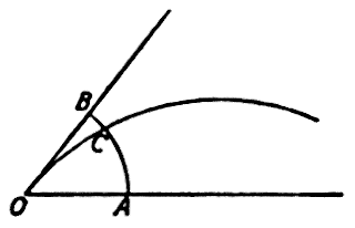 Verosimilmente Cusano pensa l’angolo rettilineo AOB intorno al punto O delimitato dall’arco AB e pone OC come tangente a OB. AC sarebbe, per così dire, l’unità di misura per l’angolo di incidenza, CB per il corrispondente angolo di contingenza, a condizione che il raggio dell’arco ACB sia considerato come una grandezza infinitesimale. Cfr. Gerbertus 1899, 4, 3; 2, 2.