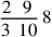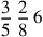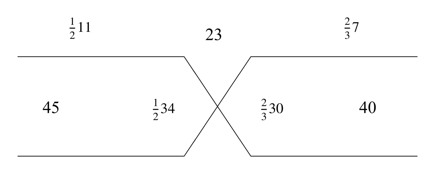94.5 Here is an example with fractions. Suppose someone said, “Denominate two sixths and two thirds of a sixth with five eighths and a third of an eighth”. It results in two-thirds, and the remainder of its numerator is two. We multiply it by the two, the remainder from numerating the denominating number, giving four thirds of a third of an eighth. Then [we multiply it] by the six, giving twenty-four thirds of a third of a sixth of an eighth. Its remainder is three, which is the answer. Then we cast out the numeration of the numerator. Its remainder is one. We multiply it by the three, then by the eight. It gives twenty-four thirds of a third of a sixth of an eighth. Its remainder is three, which equals the answer.