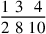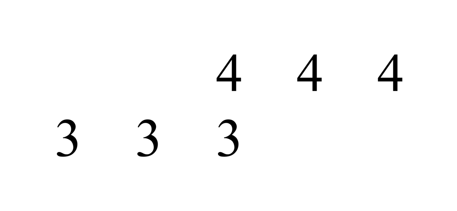 Then we write a one below the first four, a two below the second, and a three below the third. This is the first rank of the multiplier. Then we write a two below the second three, since from this point we begin decreasing one by one, as mentioned, and a one below the third three, as in this figure: