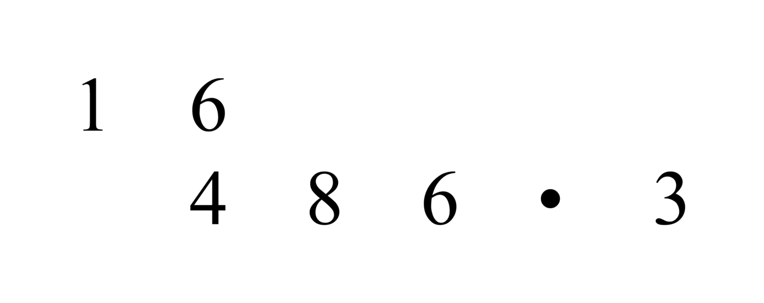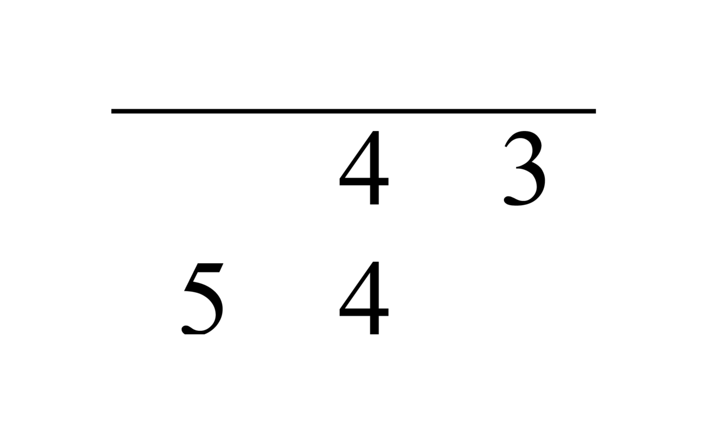 96.3 For example, if we want to multiply forty-three by fifty-four, we write down the forty-three, the multiplicand, on a line, and the fifty-four, the multiplier, on another line, so that the first digit of the multiplier is below the last digit of the multiplicand, as mentioned. Here is the figure: