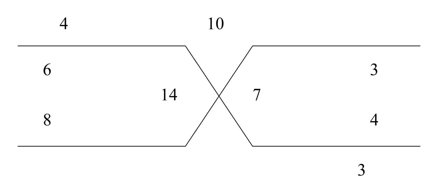 109.7 Another type is known as denomination. Here you add the two multiplicands, then you denominate one of them with the sum. Then you take that ratio of the other [multiplicand] and you multiply it by the sum, so the result is the required number.50