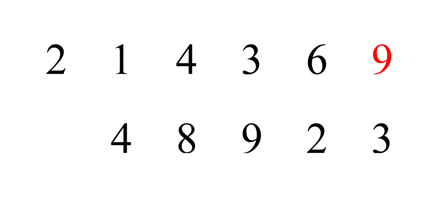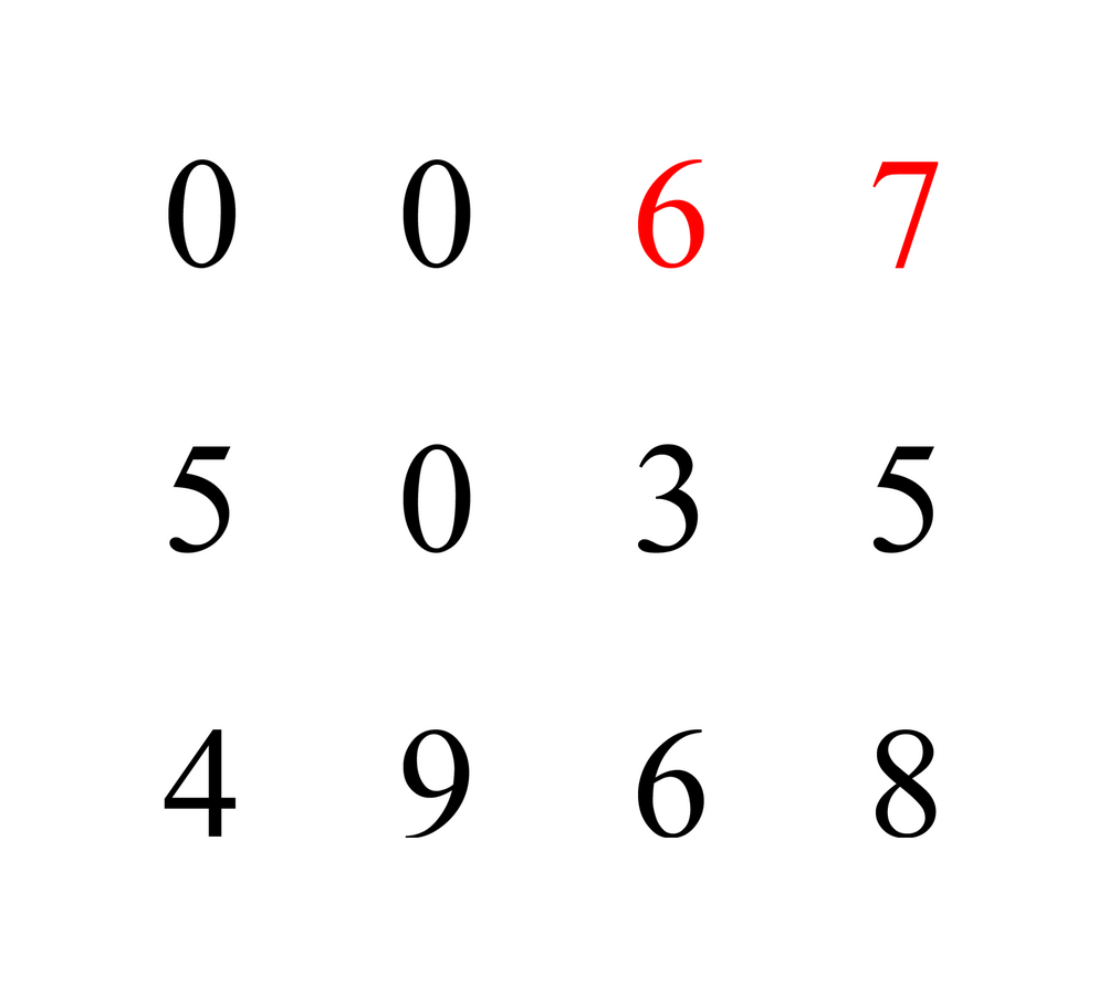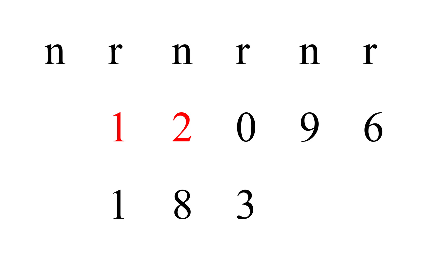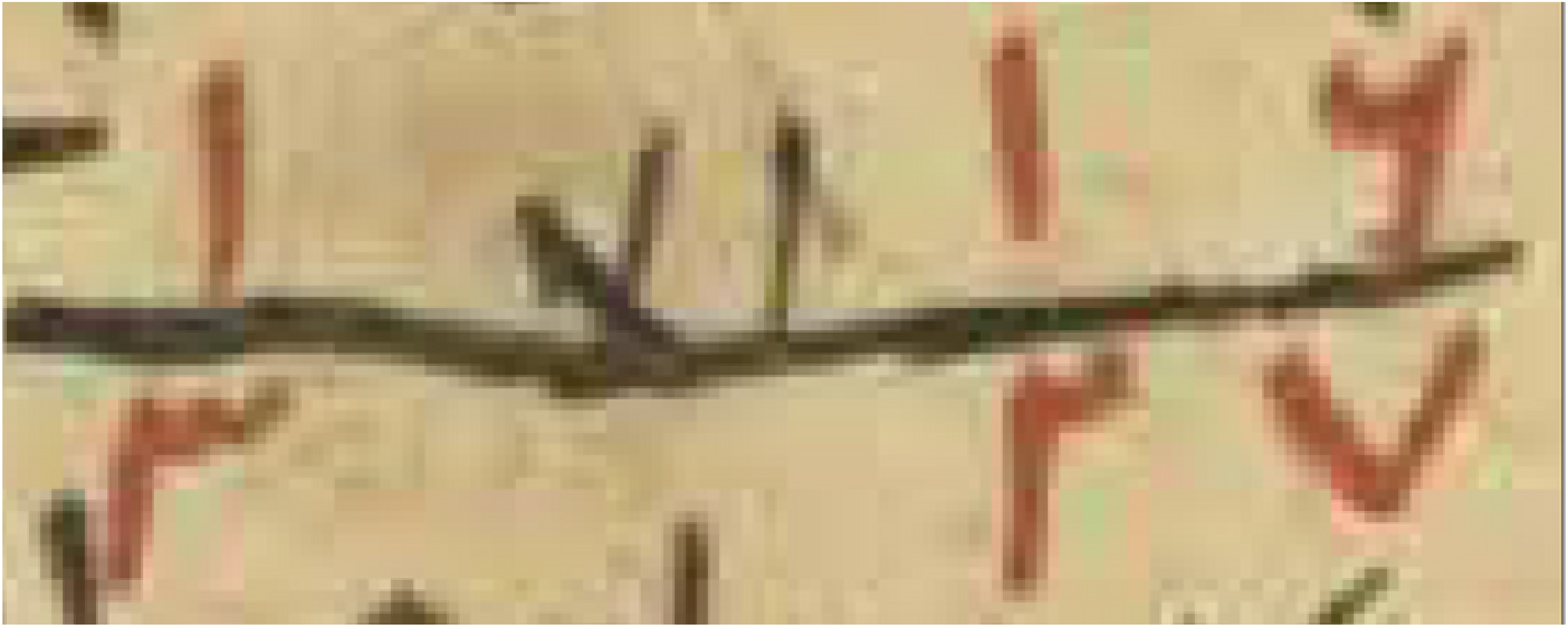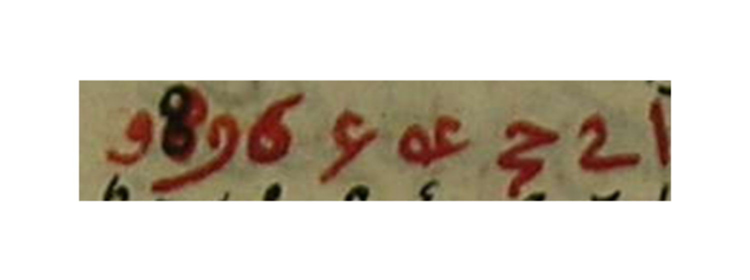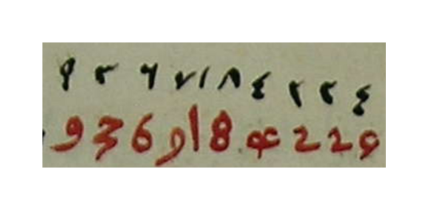 For comparison, Figure 3 shows the number 9367184225 from the same manuscript, with the Eastern forms above the Western forms. The Eastern “5”, on the right in black, is mistakenly written as a “4”.