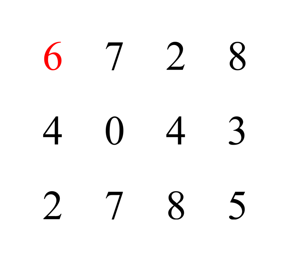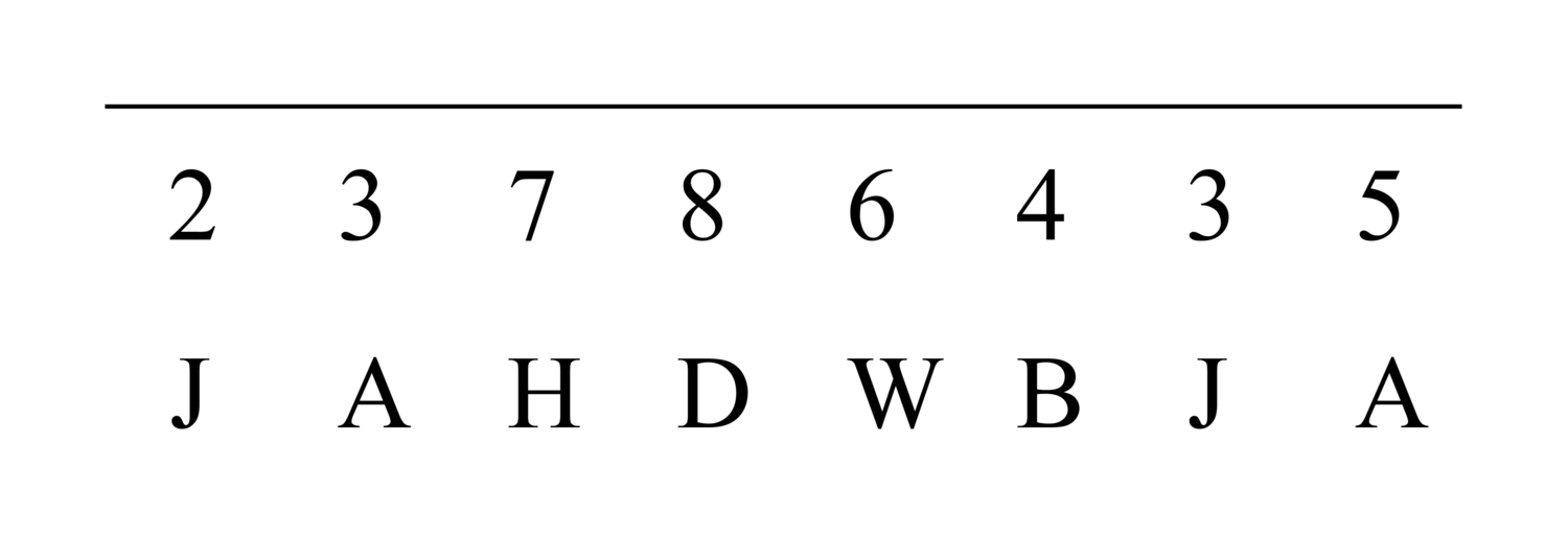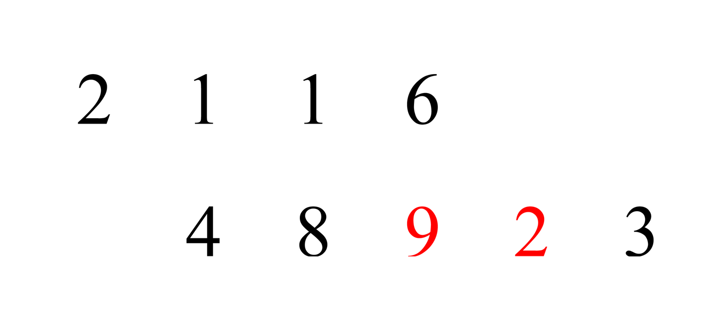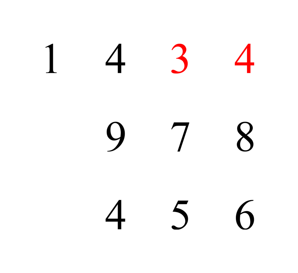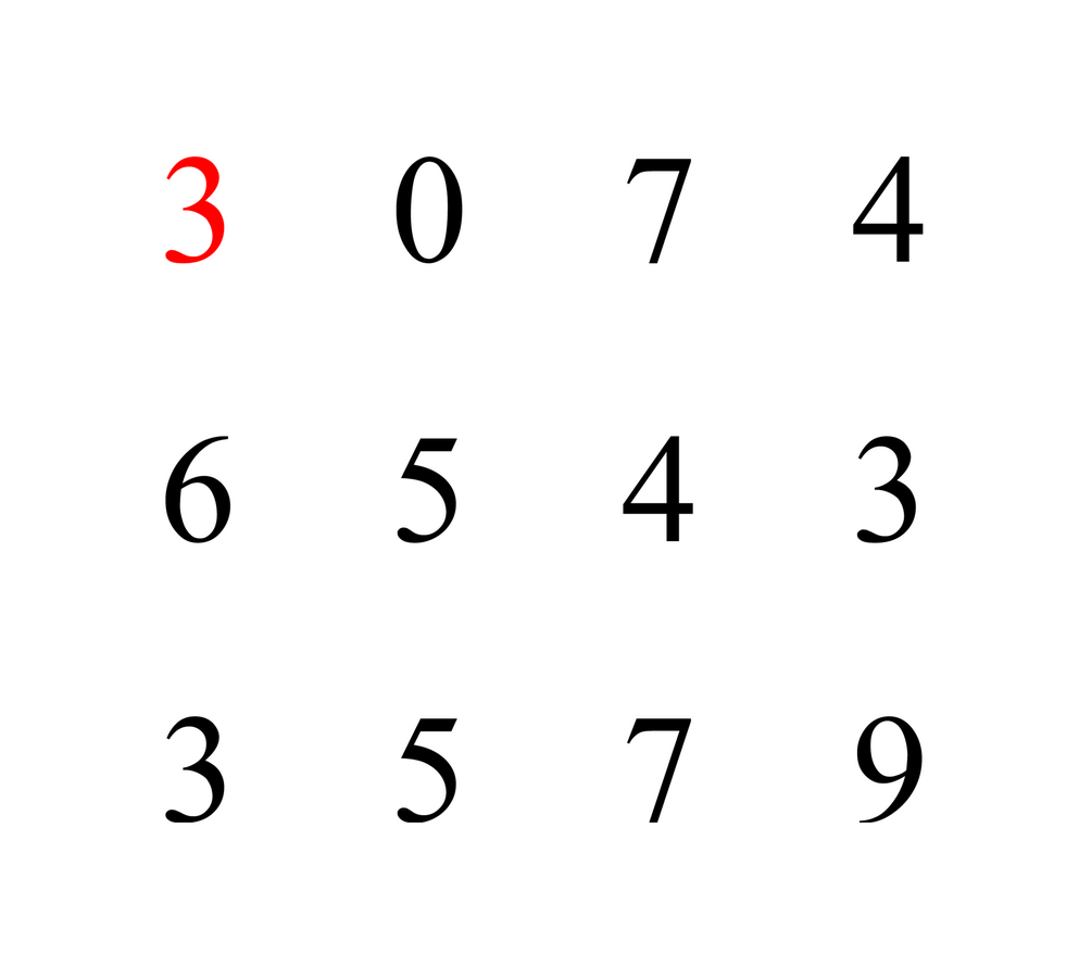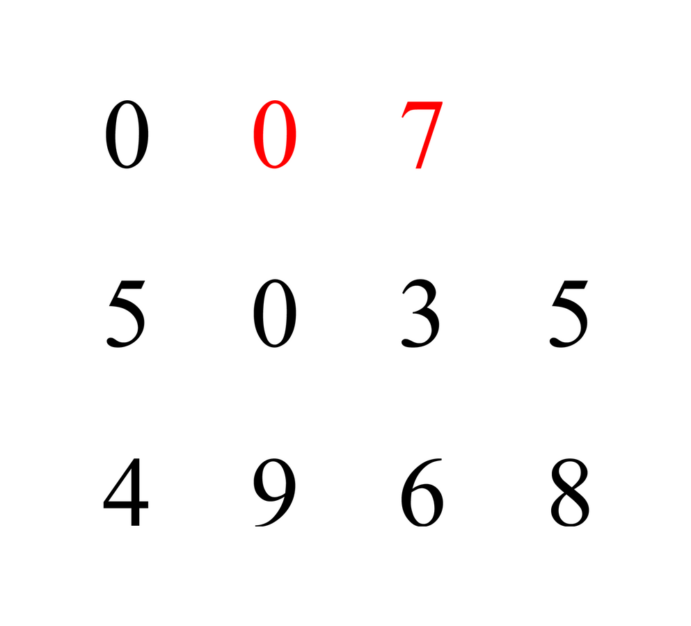 For comparison, Figure 3 shows the number 9367184225 from the same manuscript, with the Eastern forms above the Western forms. The Eastern “5”, on the right in black, is mistakenly written as a “4”.