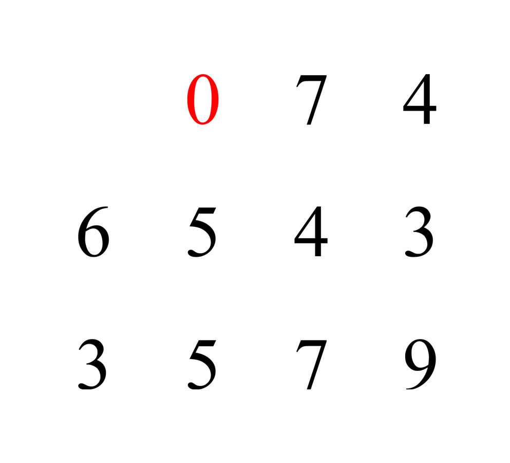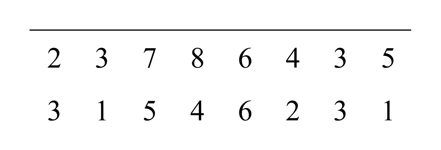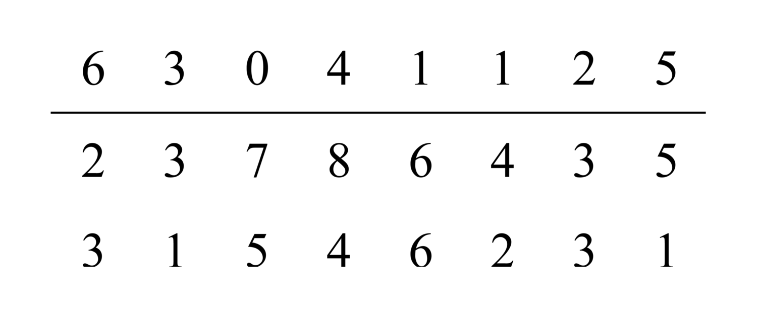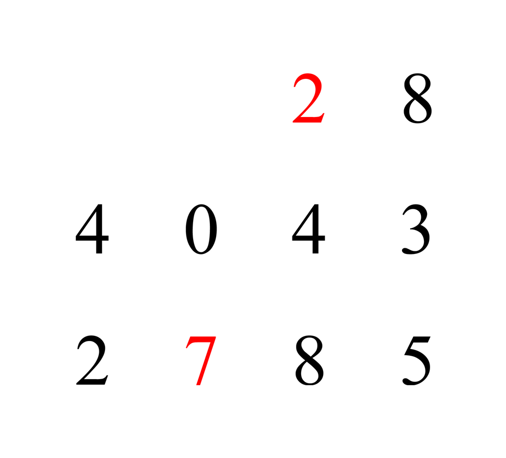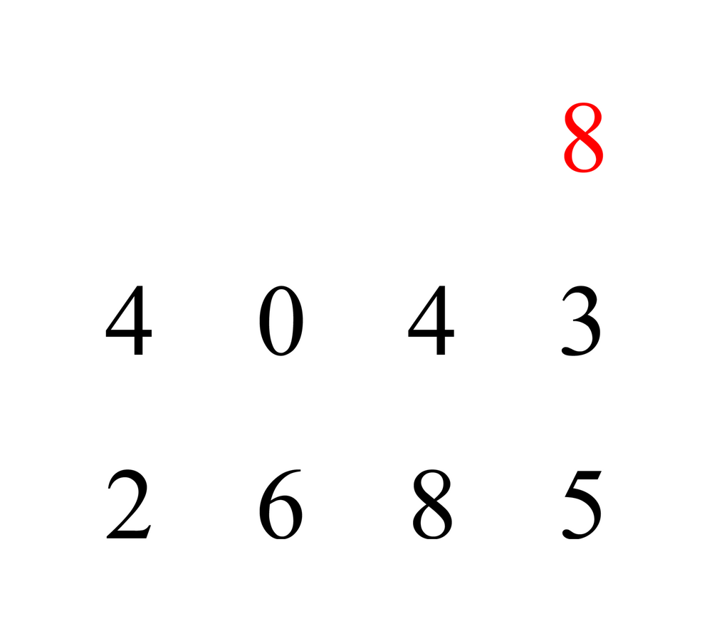 74.17 Al-Hawārī gives two examples of the first type of addition, starting with the addition of 4043 to 2685. First, the two numbers are written on two lines, like this: