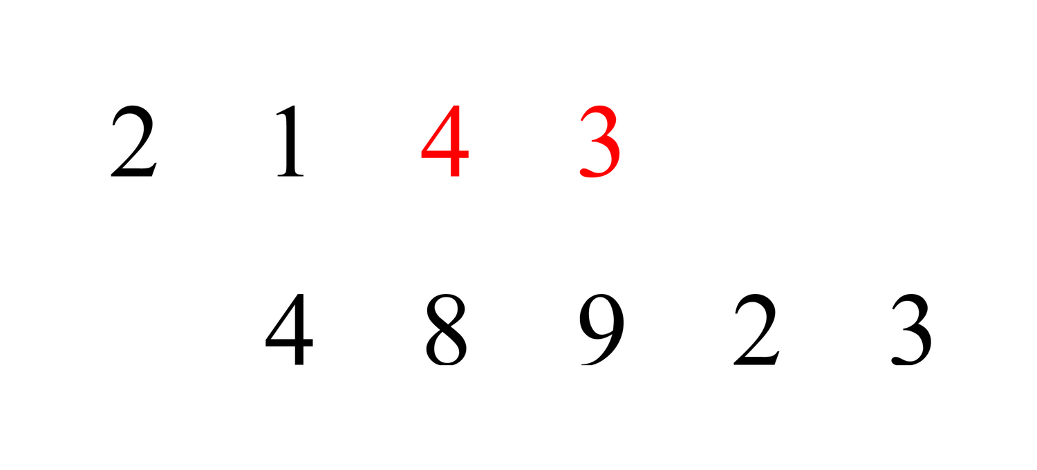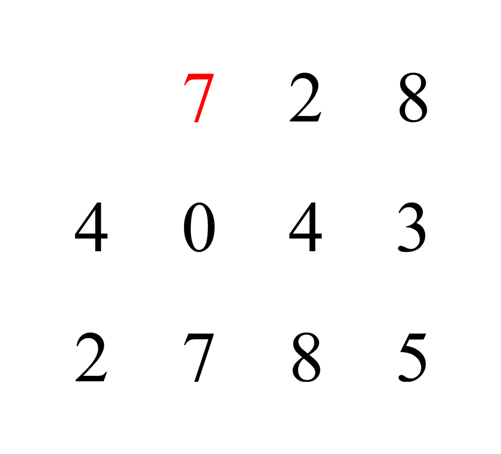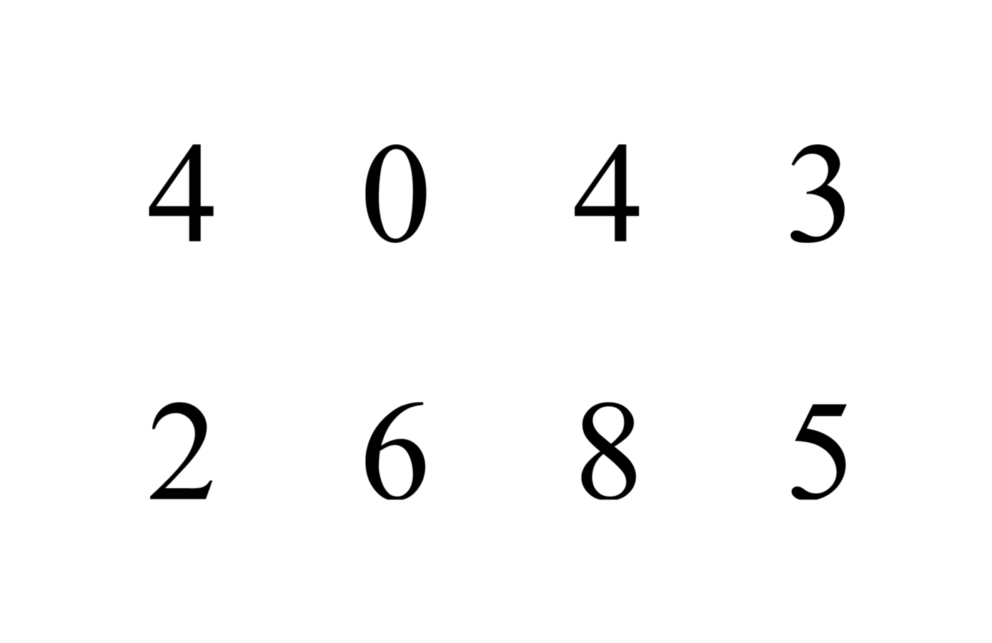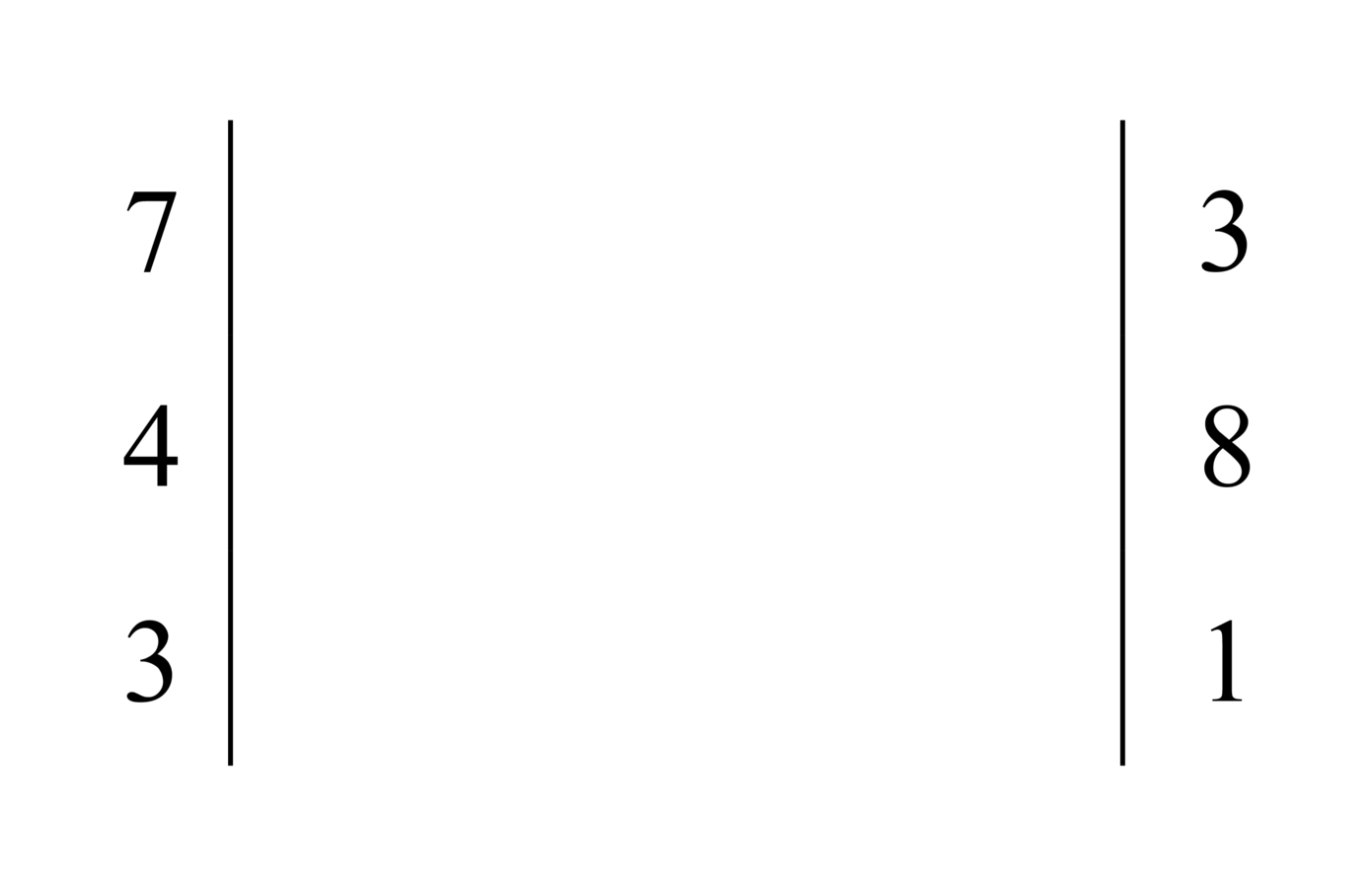 74.17 Al-Hawārī gives two examples of the first type of addition, starting with the addition of 4043 to 2685. First, the two numbers are written on two lines, like this: