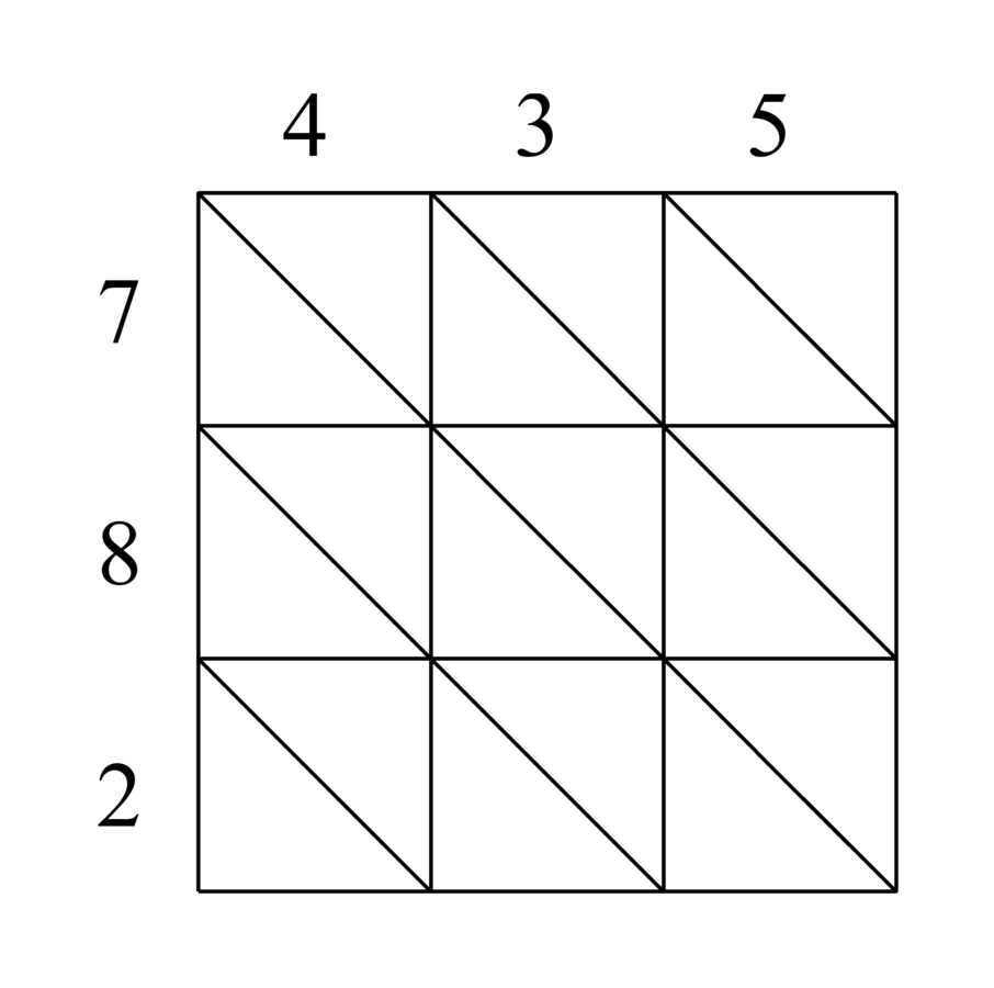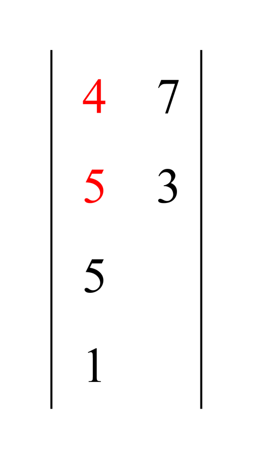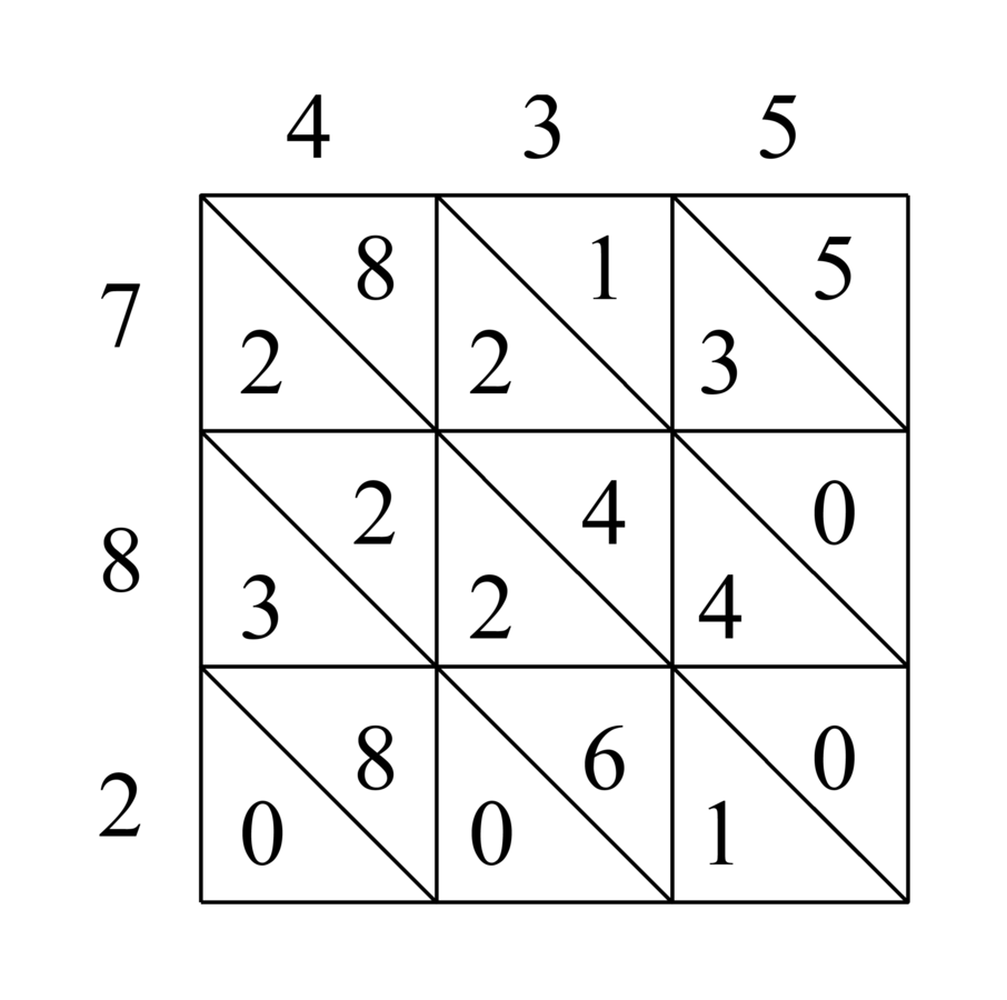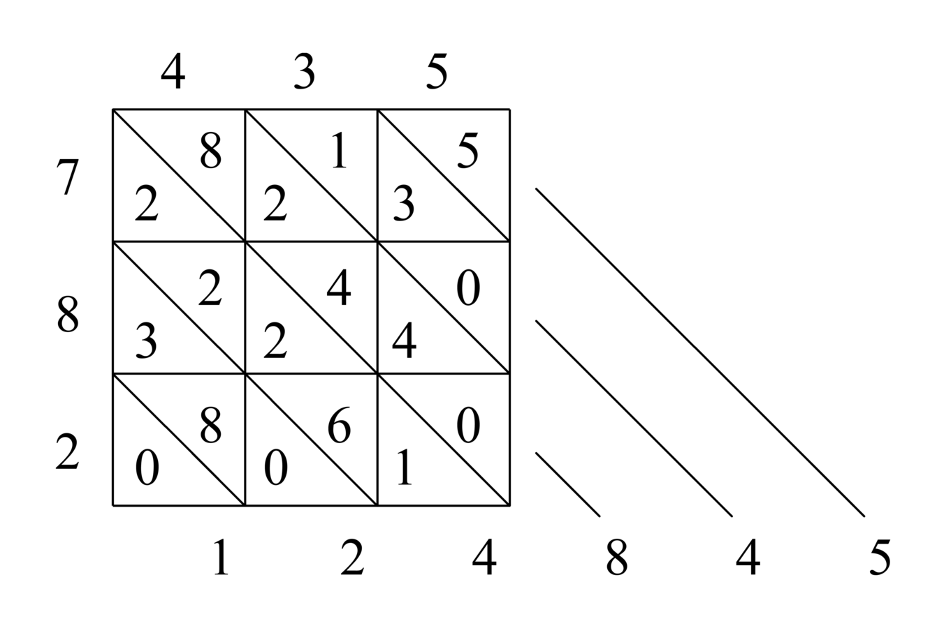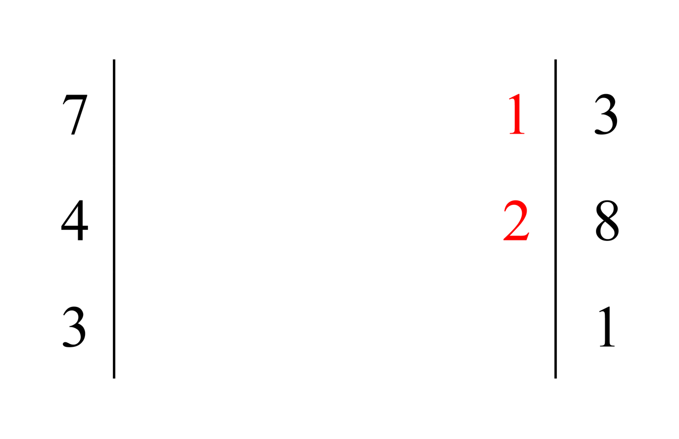74.17 Al-Hawārī gives two examples of the first type of addition, starting with the addition of 4043 to 2685. First, the two numbers are written on two lines, like this: