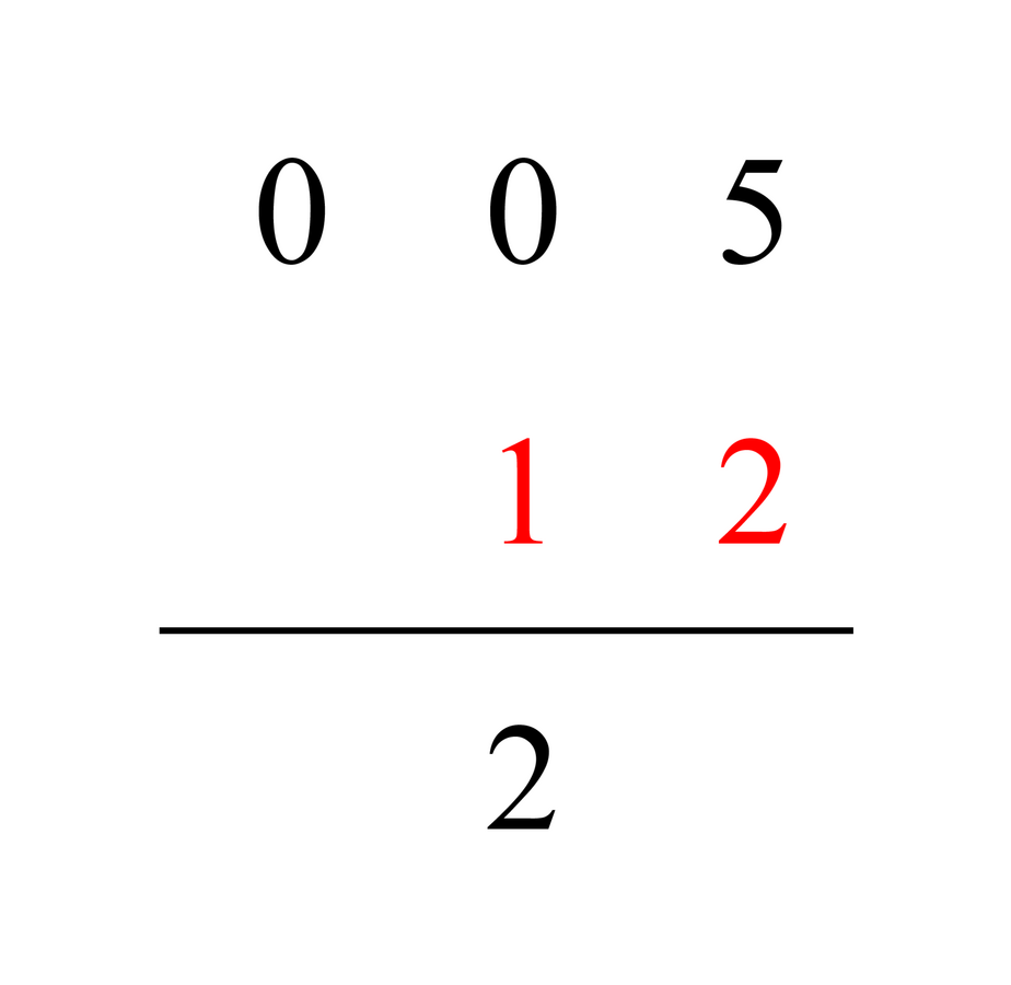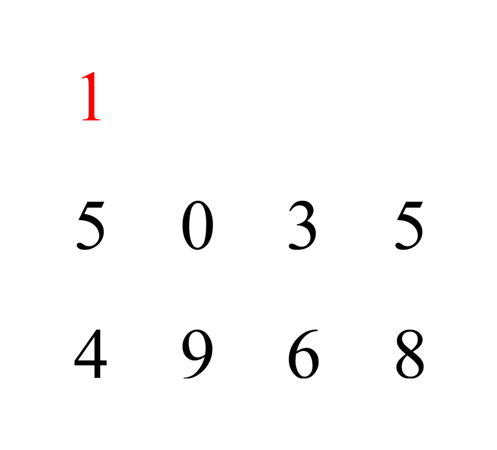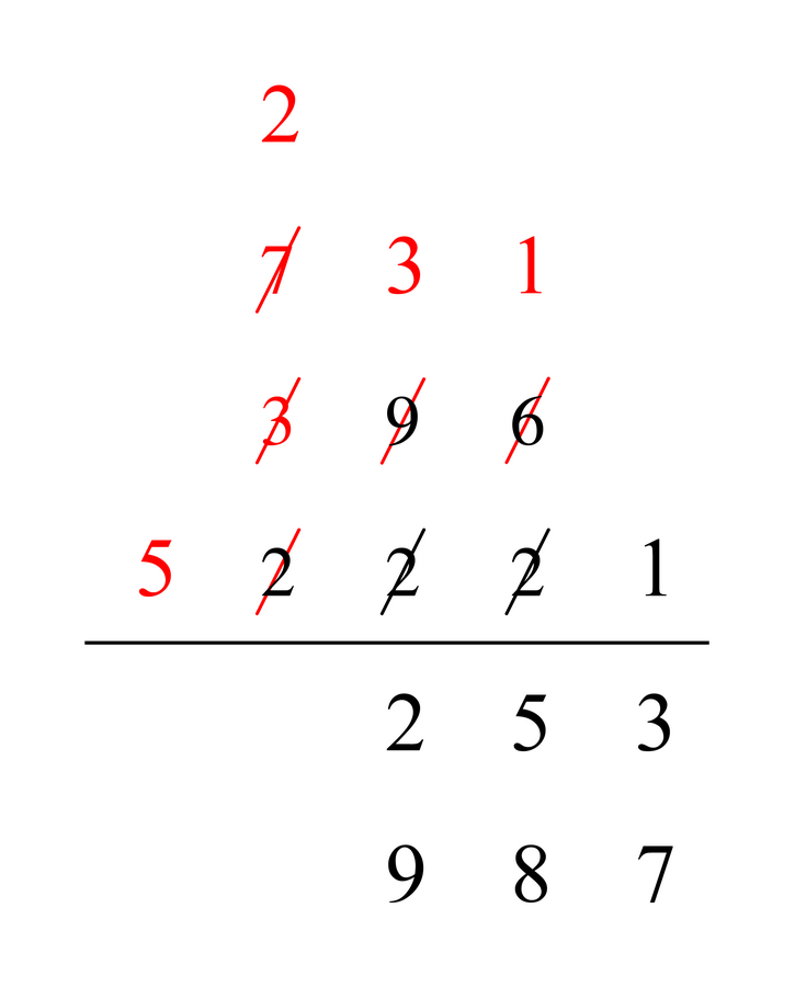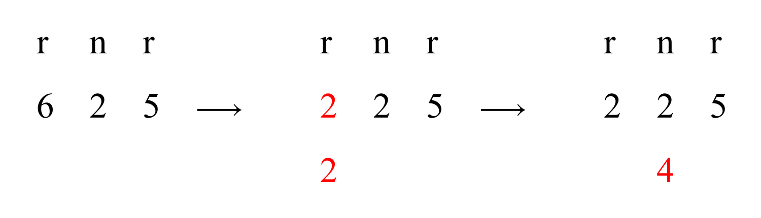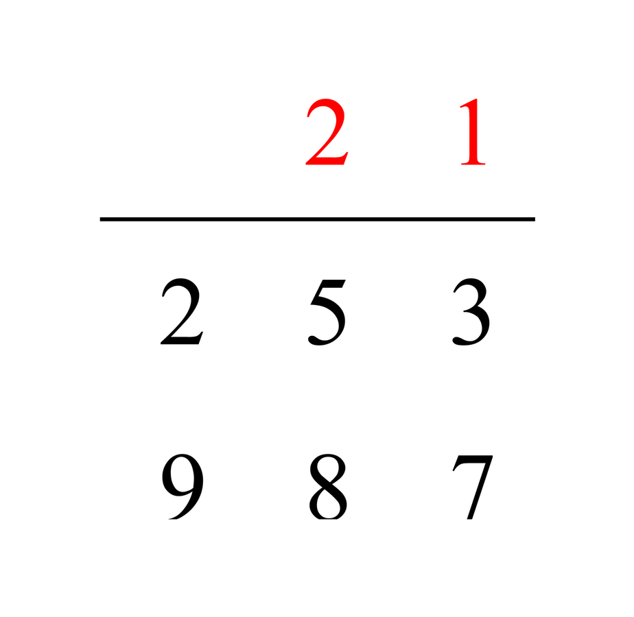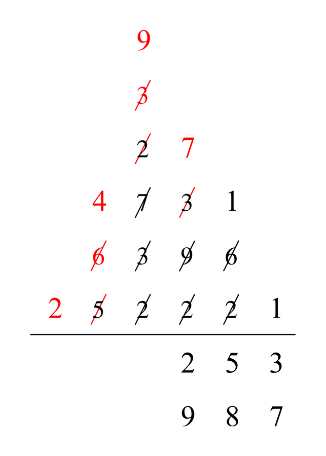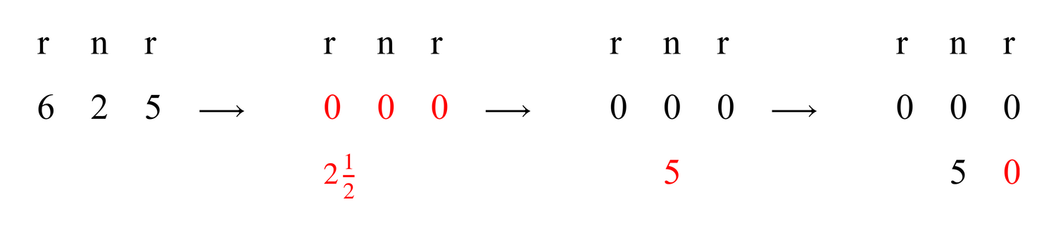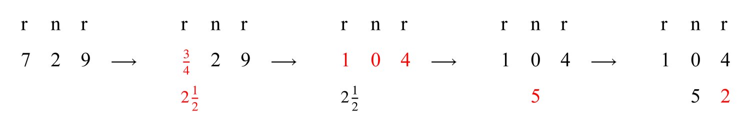 Then the units 3 and 5 are added, and the result is put above (we put changes from the previous figure in red):