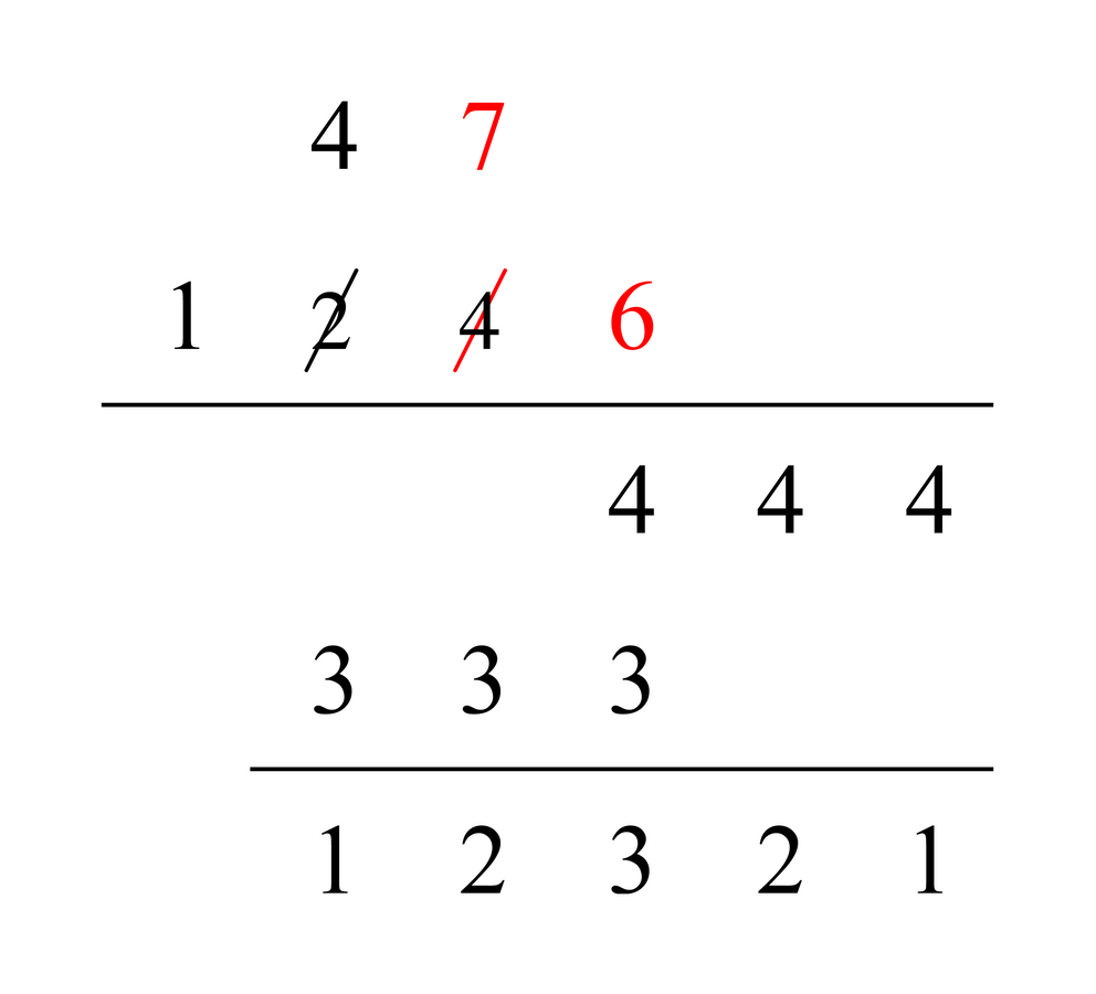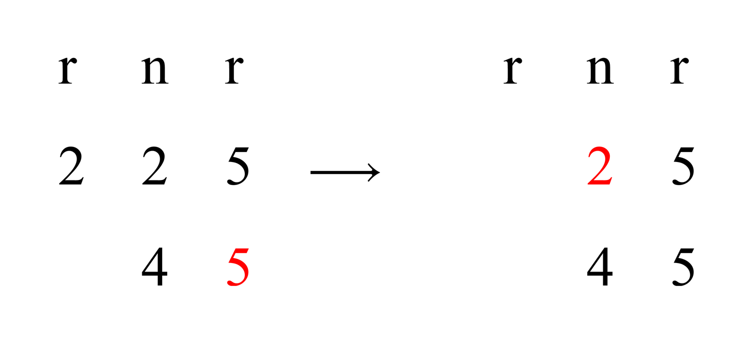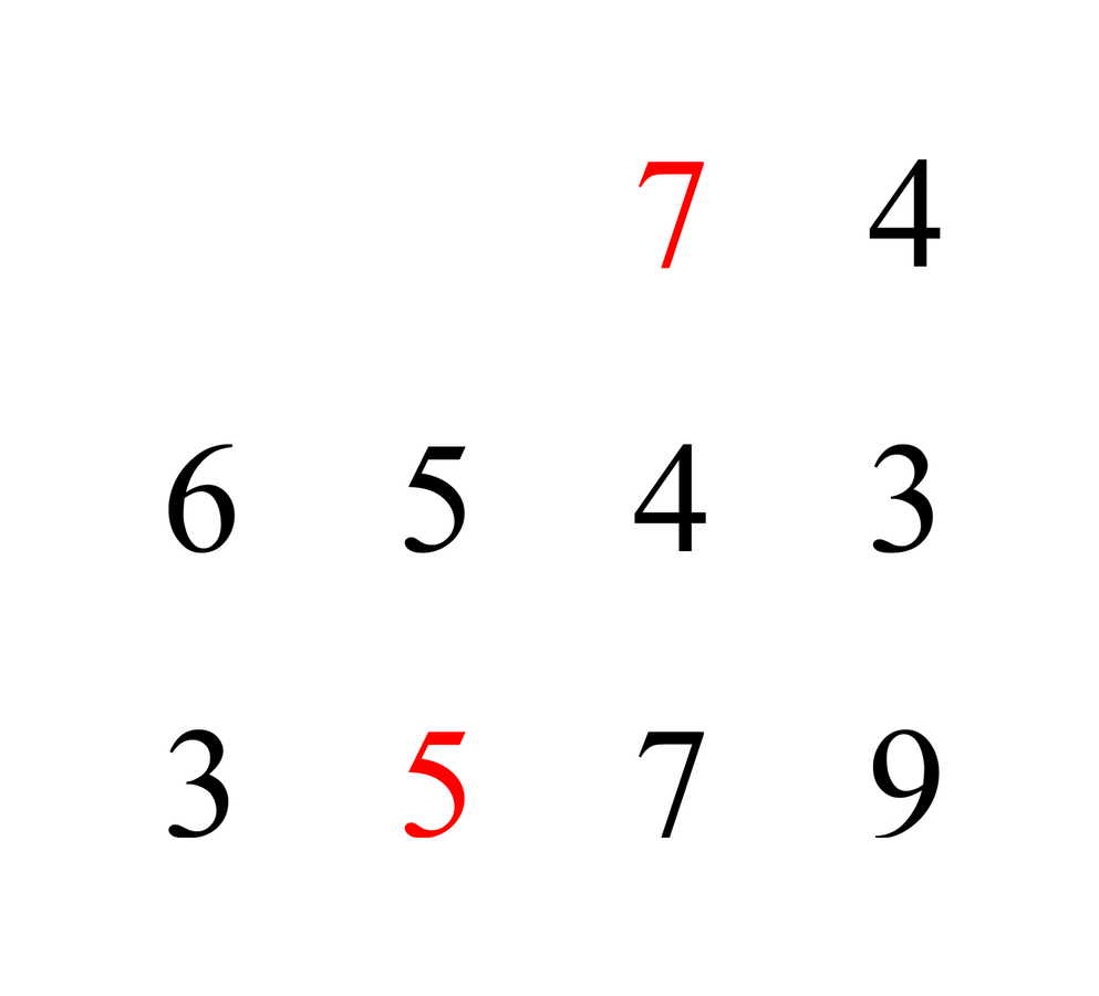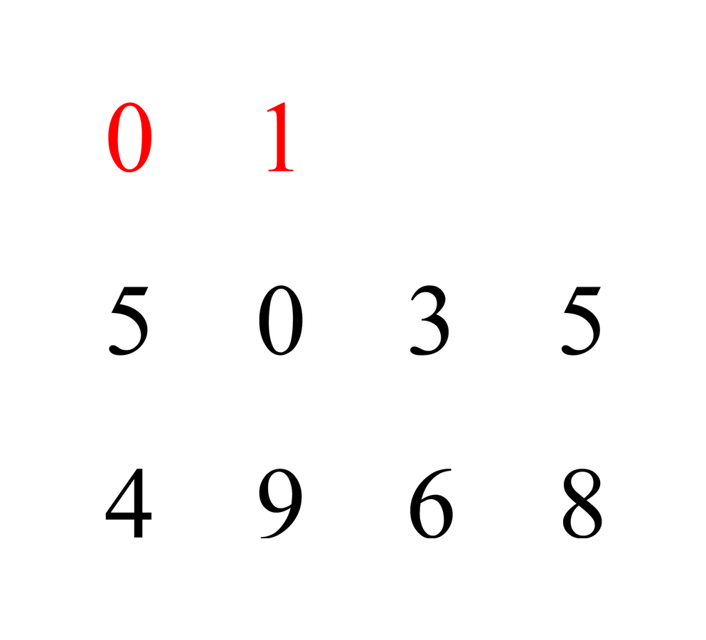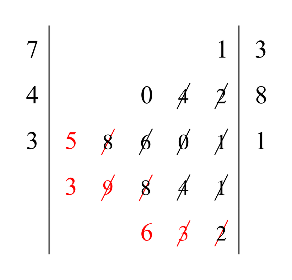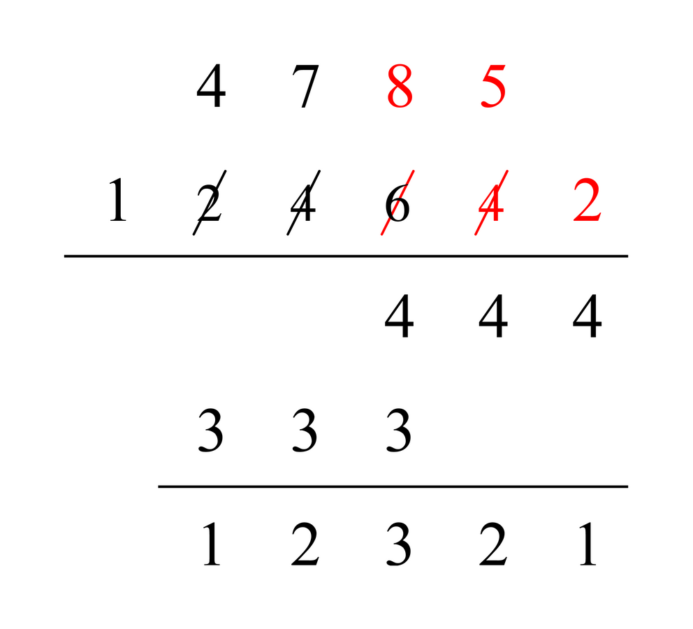 Then the units 3 and 5 are added, and the result is put above (we put changes from the previous figure in red):