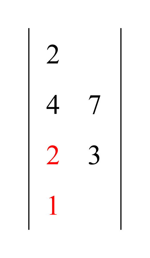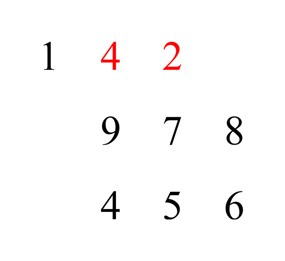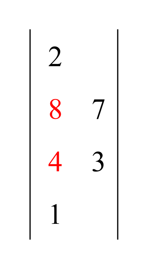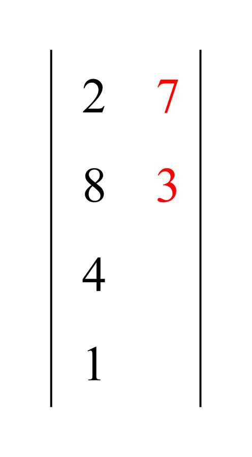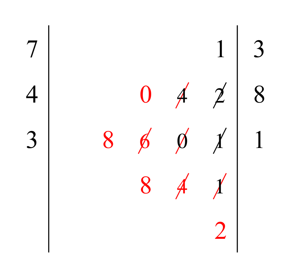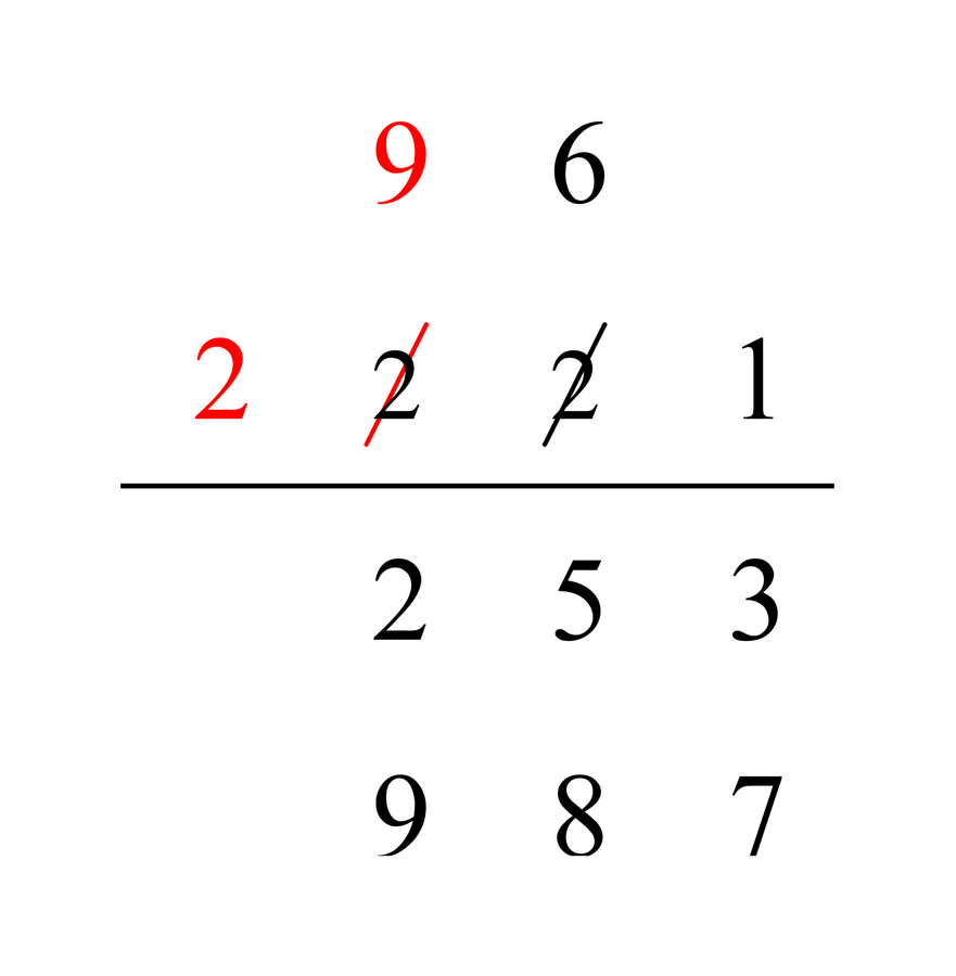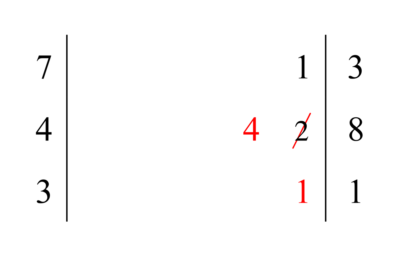 Then the units 3 and 5 are added, and the result is put above (we put changes from the previous figure in red):