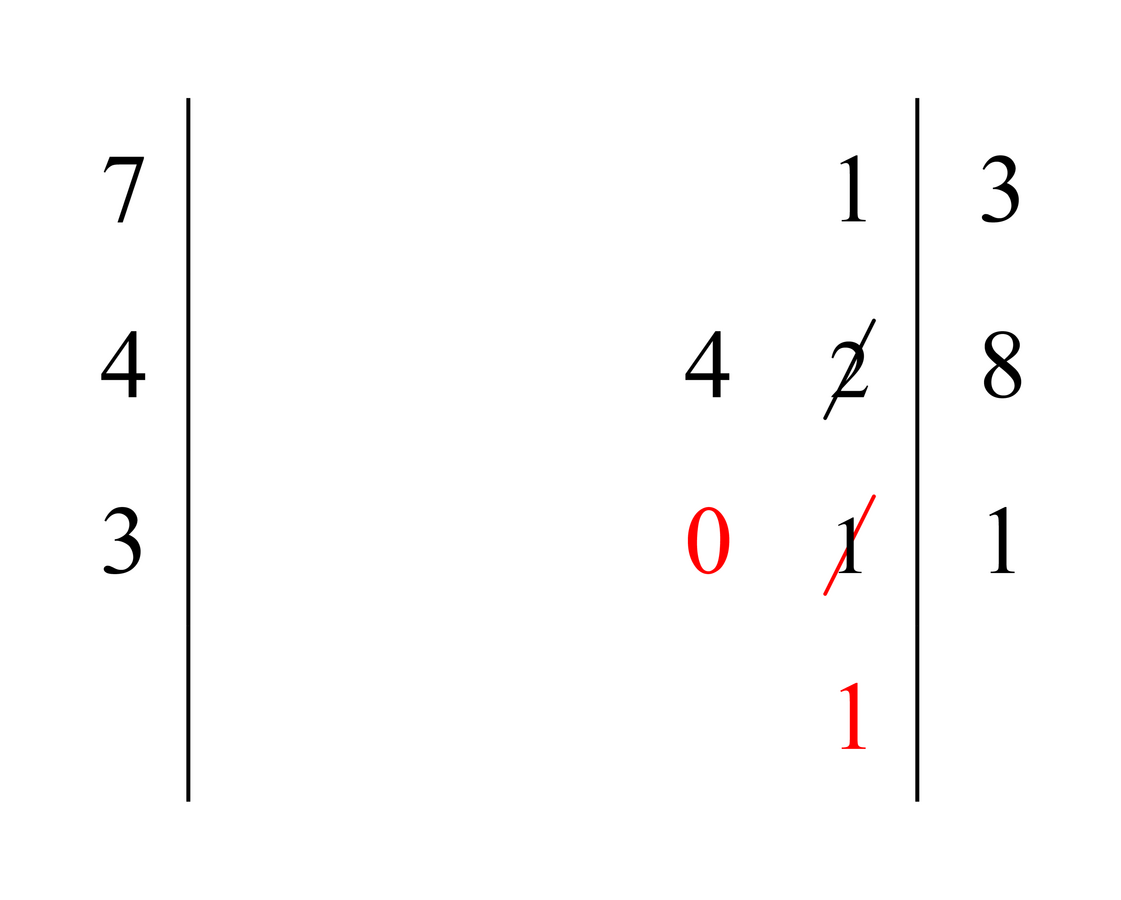 There is nothing to add to the 7, so 7 is put above the hundreds place: