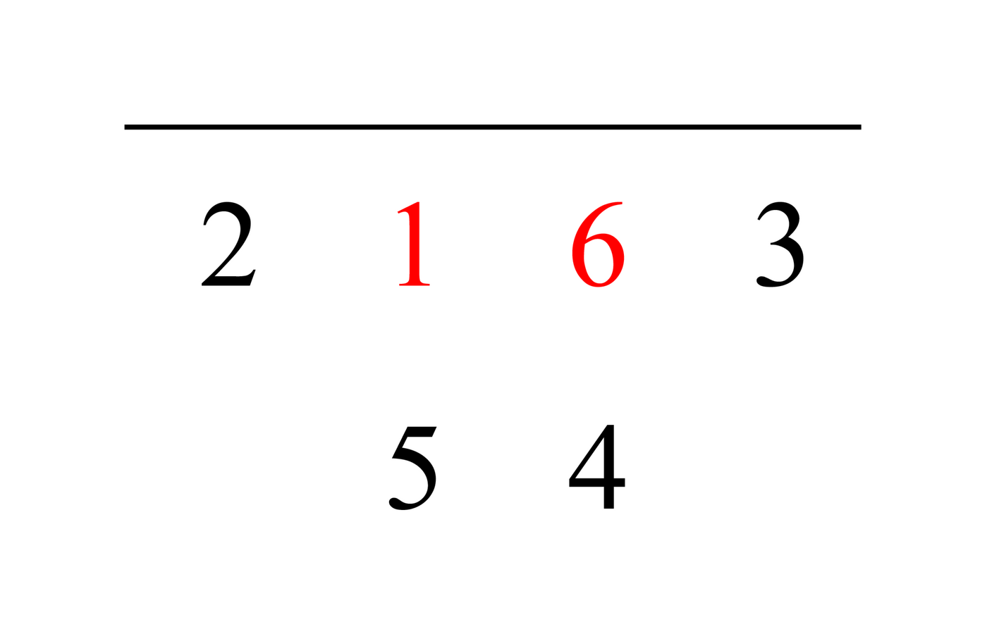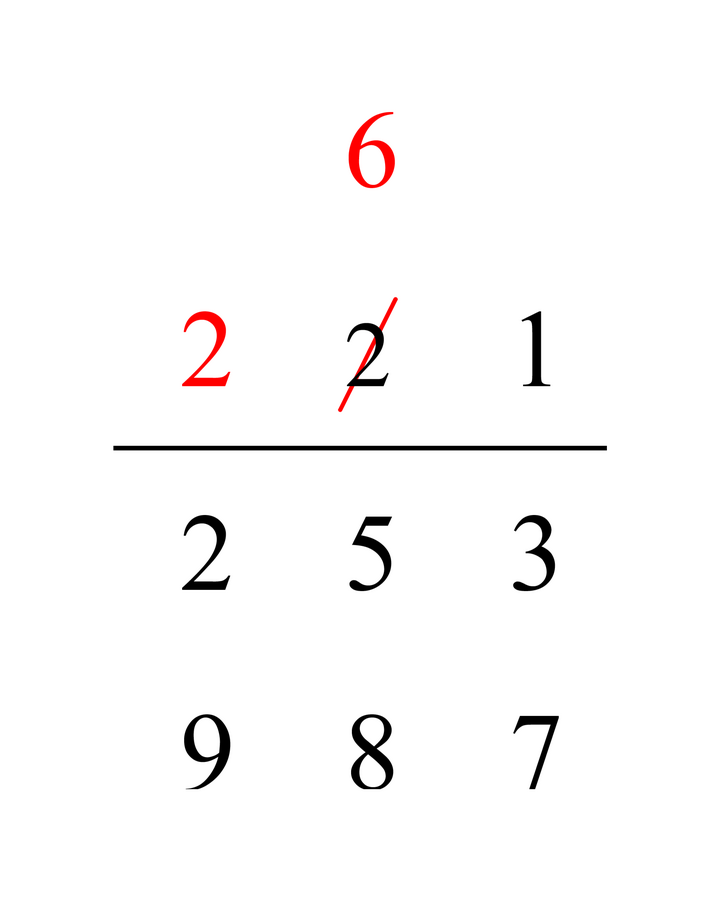has two digits, 1 is added to the 6 in the hundreds place of the lower number, and a 2 is put above the tens place: