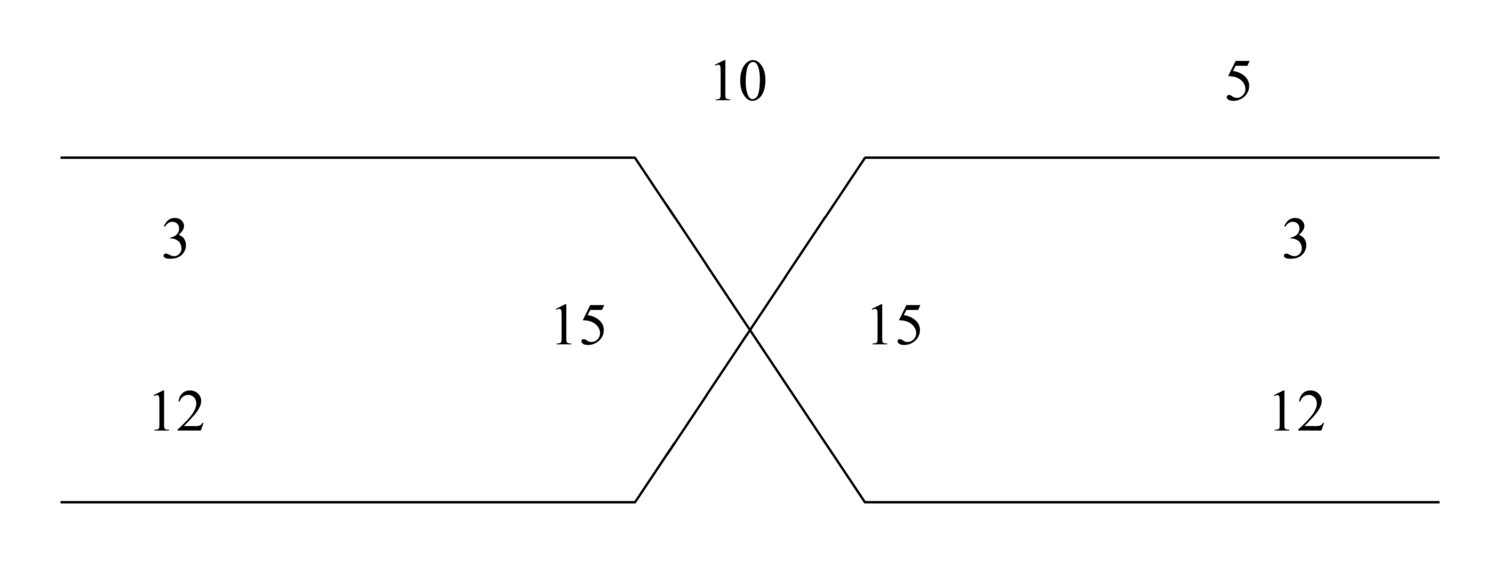 (Saidan 1986, 557.7). Ibn al-Bannāʾ’s first of two solutions by algebra is: “You make one of the parts a thing, so the other is ten less a thing. We take a third of a thing, giving a third of a thing, and you confront it with a fourth of ten less a thing, and that is two and a half less a fourth of a thing [this sets up the equation we write as