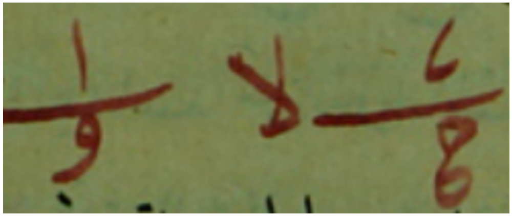 Al-Hawārī will explain the various ways of representing fractions in Chapter 2, beginning at 131.1. The examples he gives here are, in the notation described later in the book,