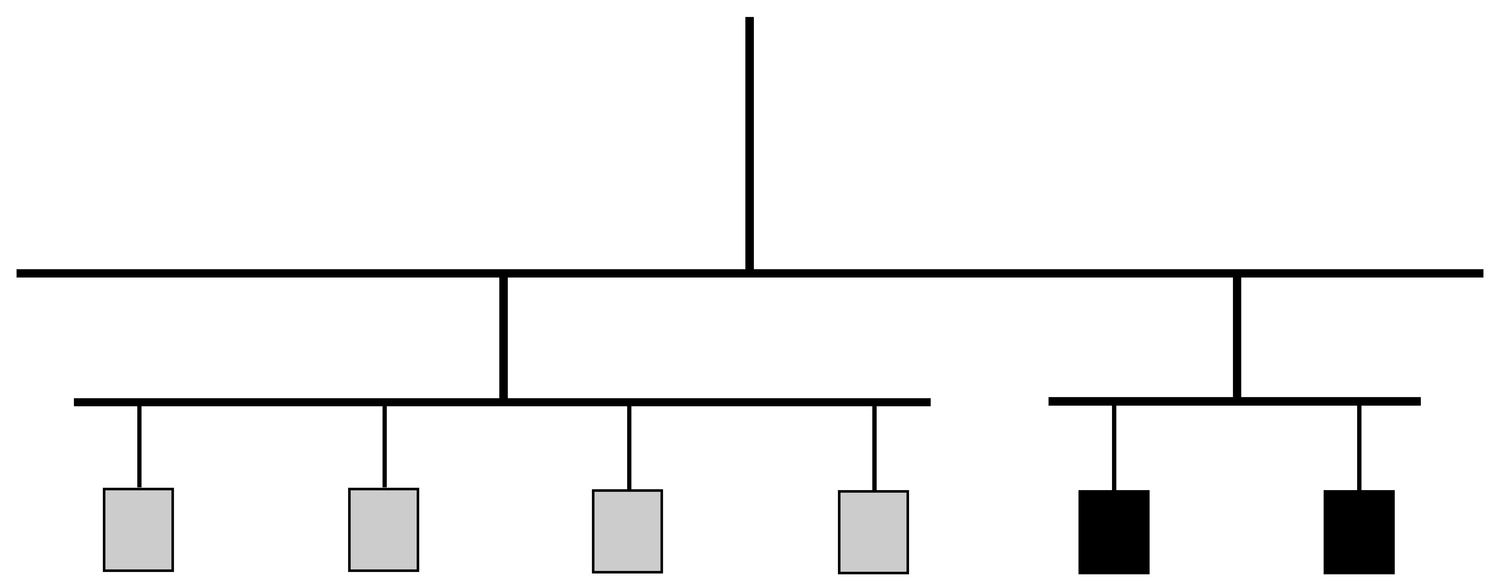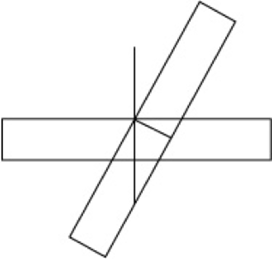 Fig. 3.3: Leonardo argued correctly that a bent lever will be in equilibrium if the weights of the two parts of the beam are equal and their centers of gravity have the same distance from the vertical through their common center of gravity.