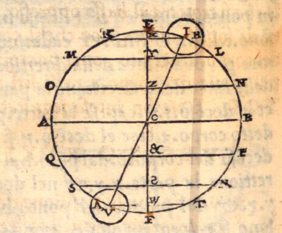 S'e centri de' pesi saranno equidistanti al loro centro comune, essi pesi staranno equali in equilibra. S'e perpendiculari de' centri de' pesi saranno equidistanti al perpendicolare del lor centro commune, essi pesi staranno equali in equilibra, se essi pesi sieno equali. Per tal ragione il centro del mondo è sempre mobile per la mutazione della inondazione dell'Oceano.