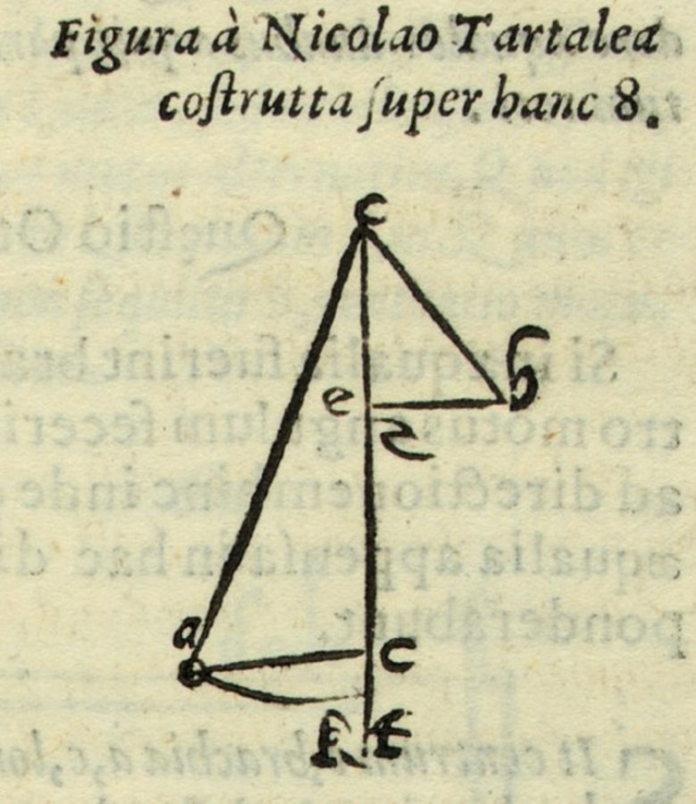 Nemore 1533, page 297 in the present edition; Cardano 1550, 17, EOAemphasized by a marginal note; Tartaglia 1546, 88v, ; see also the corresponding proposition in Tartaglia's edition of Jordanus' De ratione ponderis Nemore 1565, 3v, .