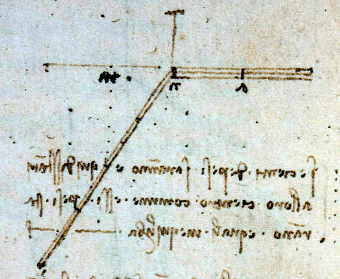 A more extensive access to the ancient heritage did not become possible before the fifteenth century. Among the first to refer to the Archimedean concept of center of gravity was Leonardo da Vinci who used it in his work on mechanical devices. In particular, he applied the concept to the problem of the bent lever (see figure 3.3):