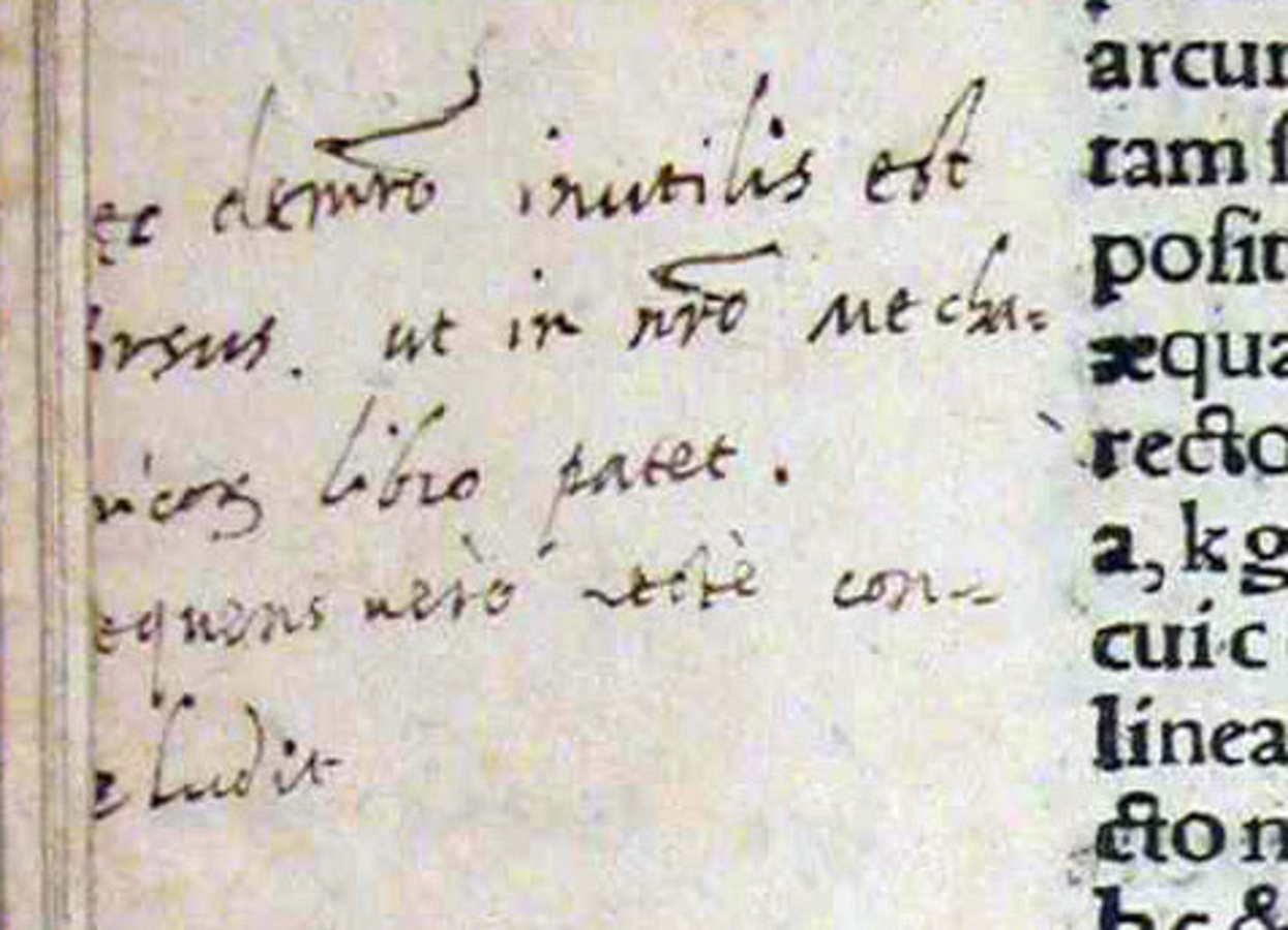[ha]ec demonstratio inutilis est [pr]orsus ut in nostro Mechanicorum libro patet. [s]equens vero recte concludit