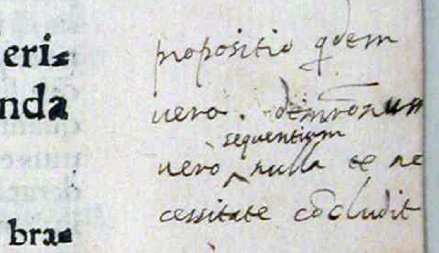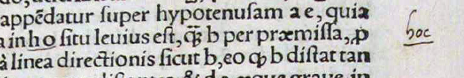 The next marginal note simply corrects a typographical error at the end of the commentary to theorem 7, replacing ho in the text which is underlined by the correct word hoc.