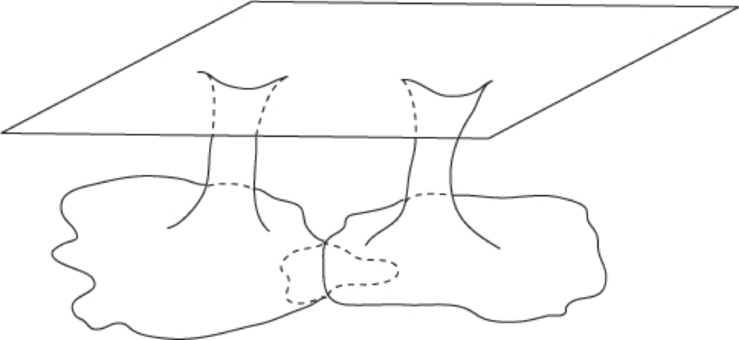 These functions appear to contain singularities, but they really do not. This brings us into the study of the topology of this situation. The point at which the metric seems to become singular can be thrown away. This is consistent with the requirement of completeness, but would not be consistent if the point which is thrown away were one at which the metric did not become singular. A picture can be drawn to indicate what the space so obtained looks like. Near the point