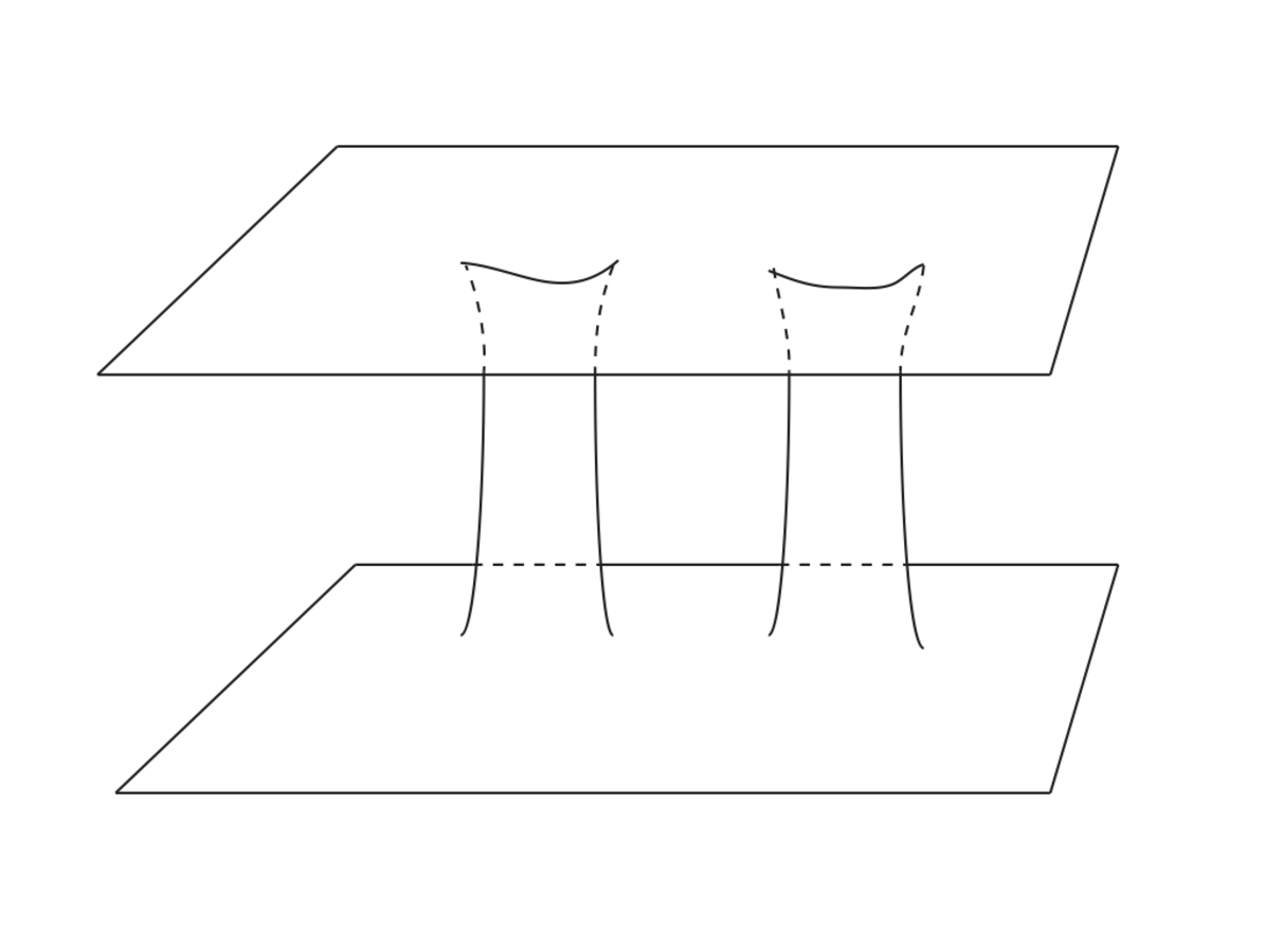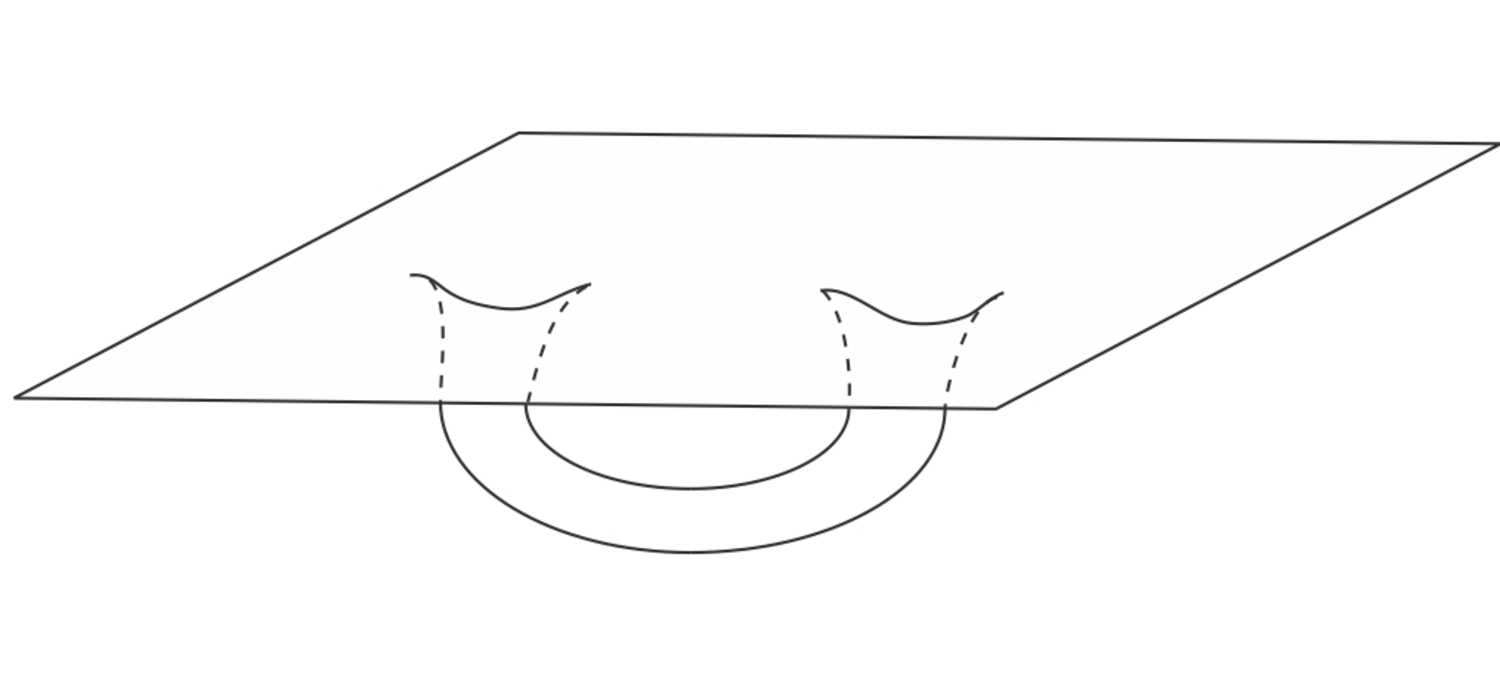 the space, which is flat further away, curves and flares out and goes over into another roughly flat portion like this: