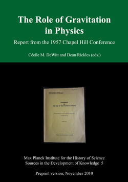 Rickles, Dean and DeWitt, Cécile M. (2011). The Role of Gravitation in Physics: Report from the 1957 Chapel Hill Conference. Berlin: Max-Planck-Gesellschaft zur Förderung der Wissenschaften.