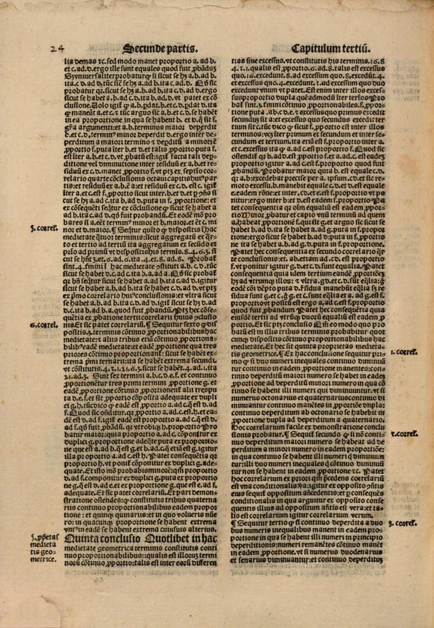 a duodenario se habeat in proportio[ne] dupla a senario, continuo illud, quod remanet ex duodenario, se habet in proportione dupla ad illud, quod remanet a numero senario. Et sub tenore huius exempli ego intelligo correlarium. Non enim in istis exactus sensus dialecticus est expetendus, sed ipsa mathematica sententia est efflagitanda. Hoc correlarium perinde atque primum demonstrationem conclusionis exquirit. Applica, ut vales.