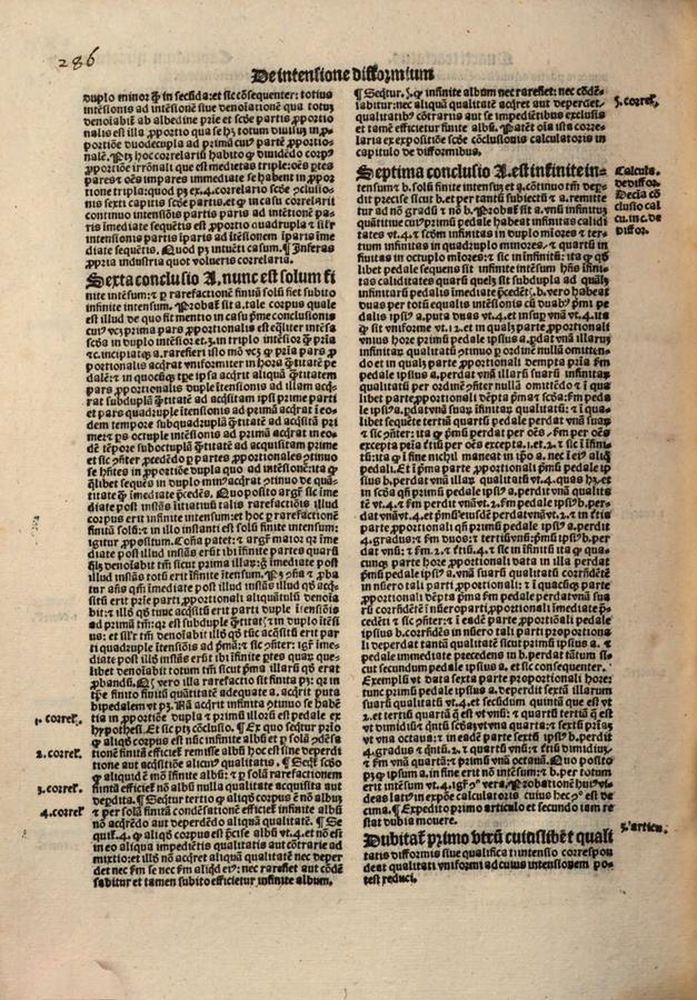 ¶ Sequitur 5., quod infinite album nec rarefiet nec condensabitur, nec aliquam qualitatem acquiret aut deperdet qualitatibus contrariis aut se impedientibus exclusis, et tamen efficietur finite album. Patent omnia ista correlaria ex expositione secundae conclusio[n]is calculatoris